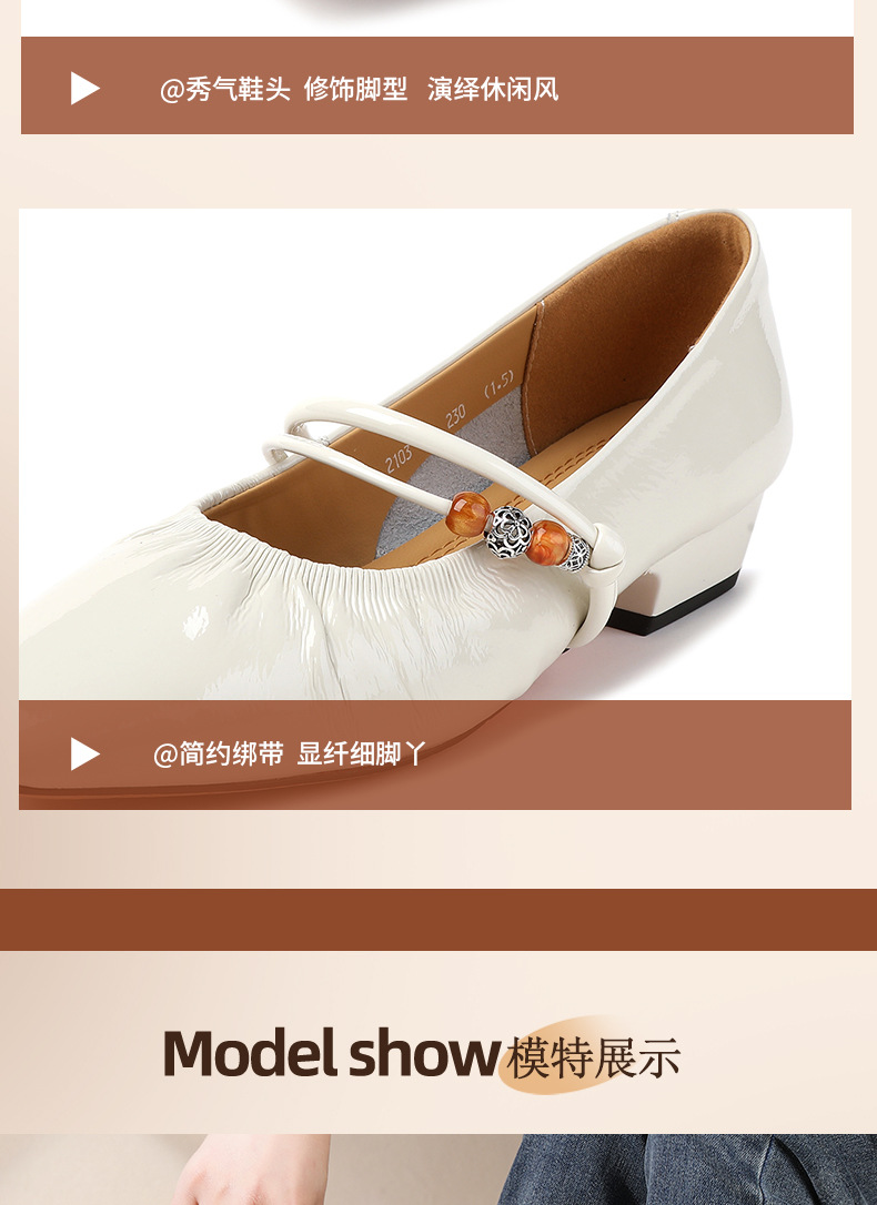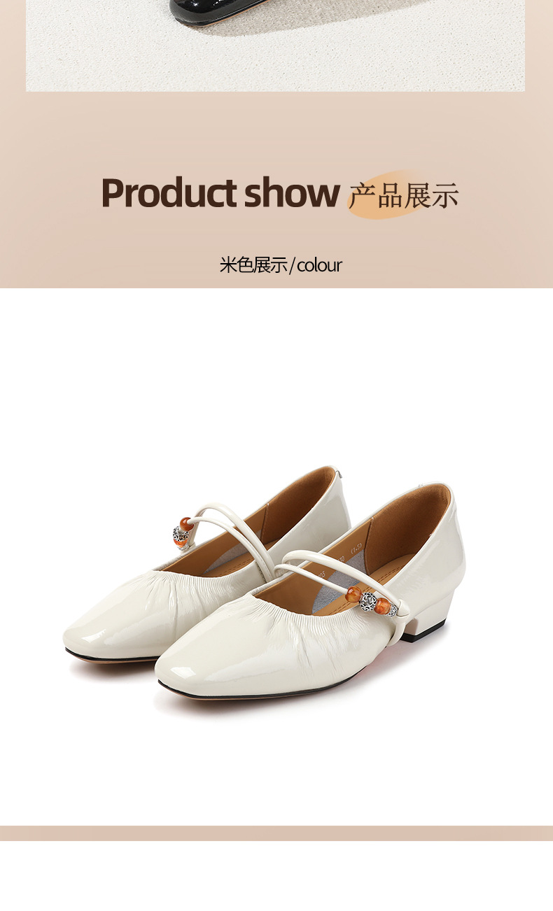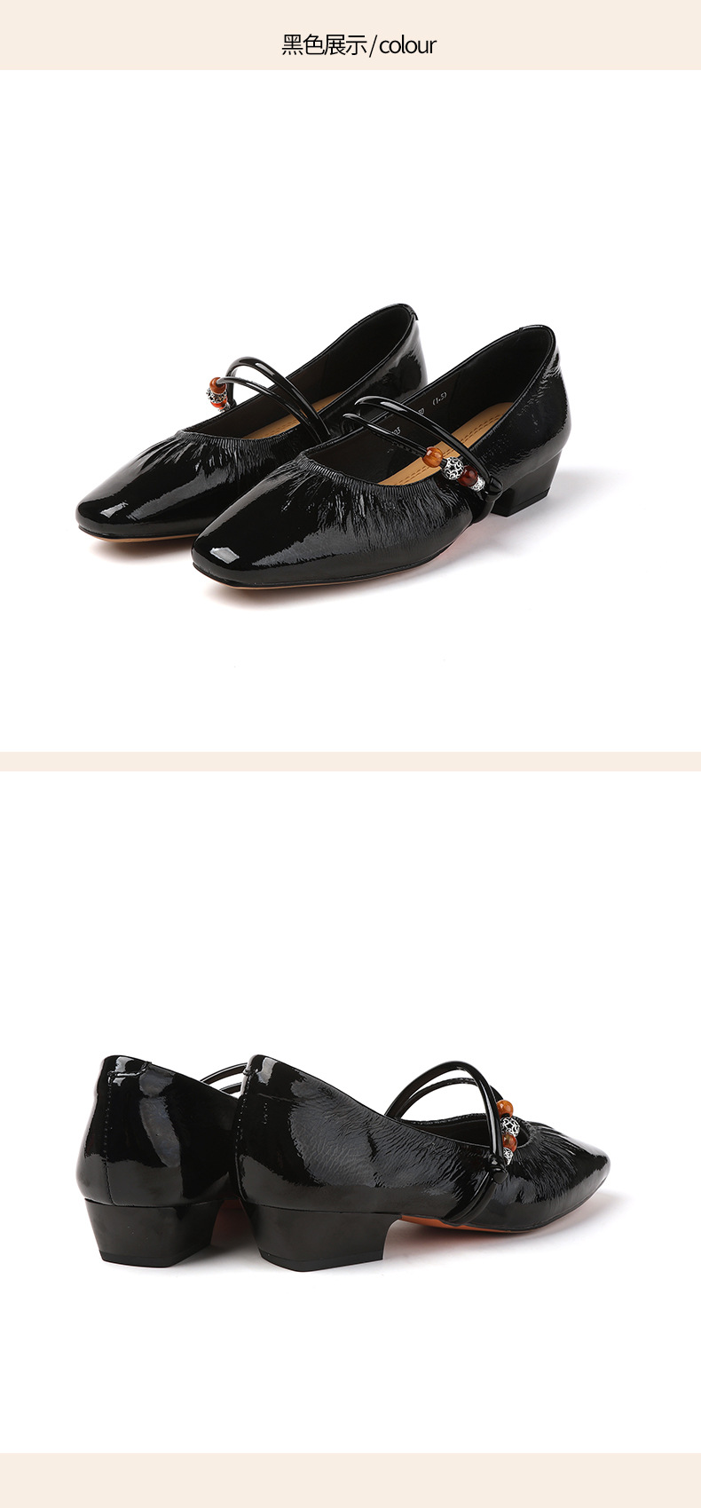 雀说 头层牛皮一字扣中跟串珠浅口单鞋复古仙女鞋2103 商品图2