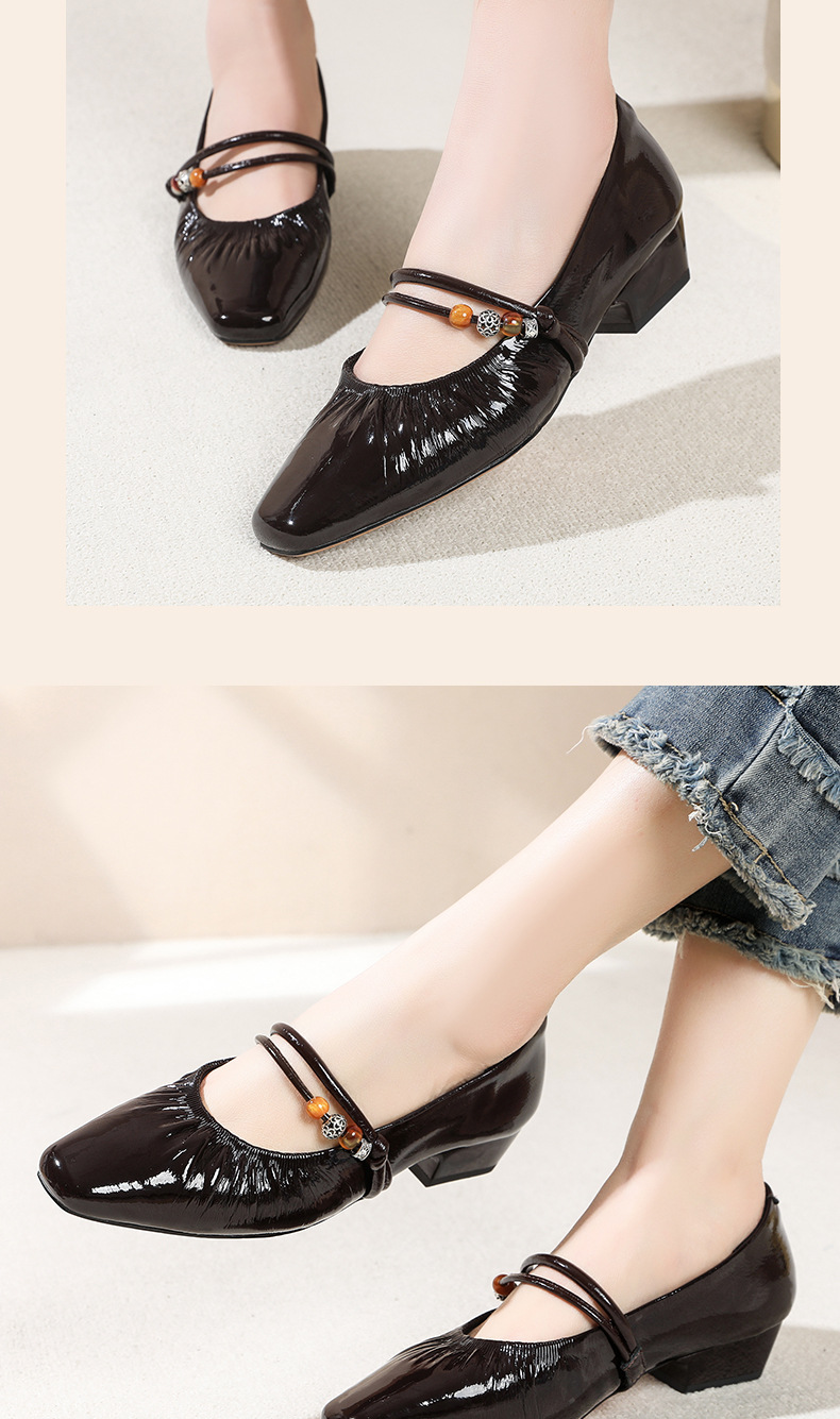 雀说 头层牛皮一字扣中跟串珠浅口单鞋复古仙女鞋2103 商品图4