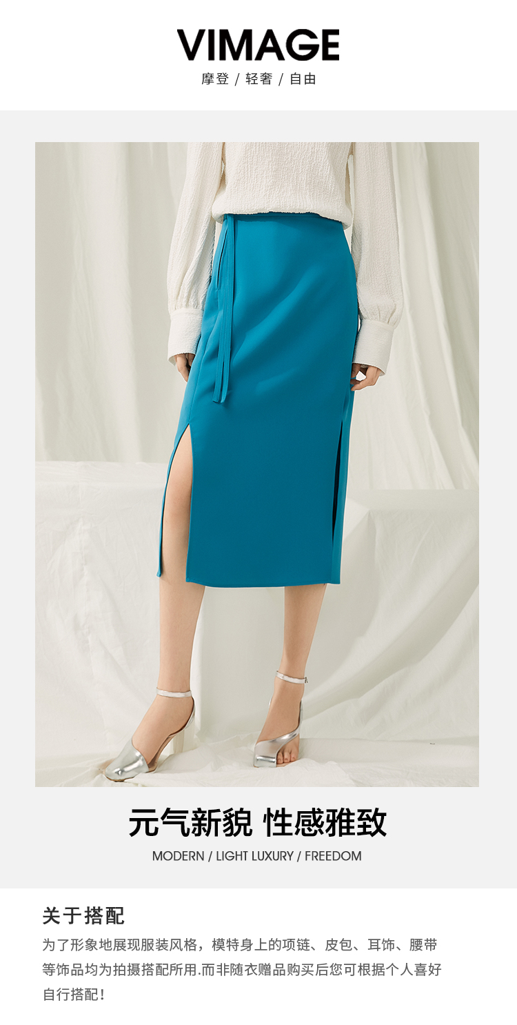 VIMAGE纬漫纪春季新款时尚气质显瘦高腰开叉半身裙女V1906505