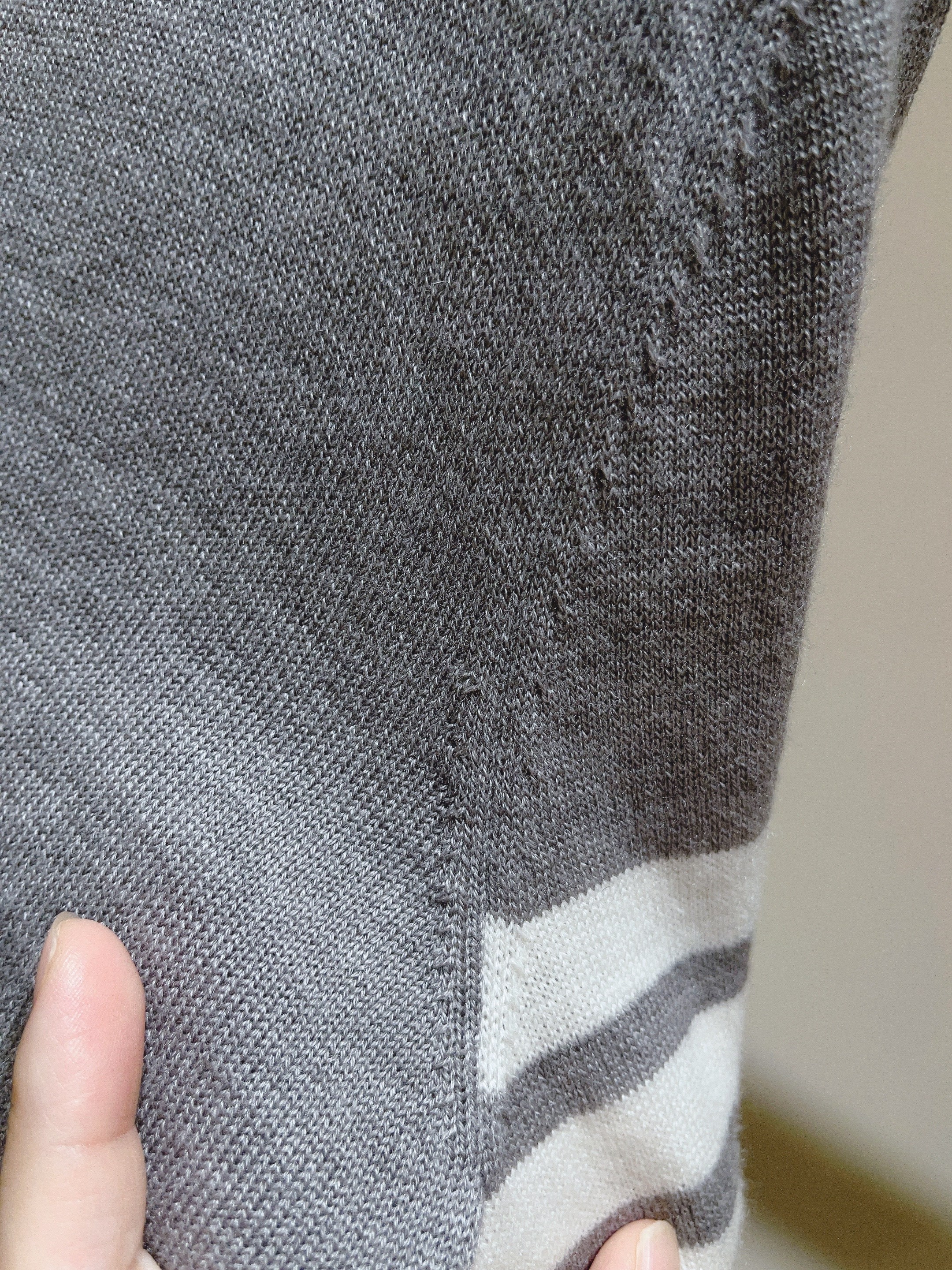 1.针织服饰存在轻微线头,属于正常现象不在售后范围内