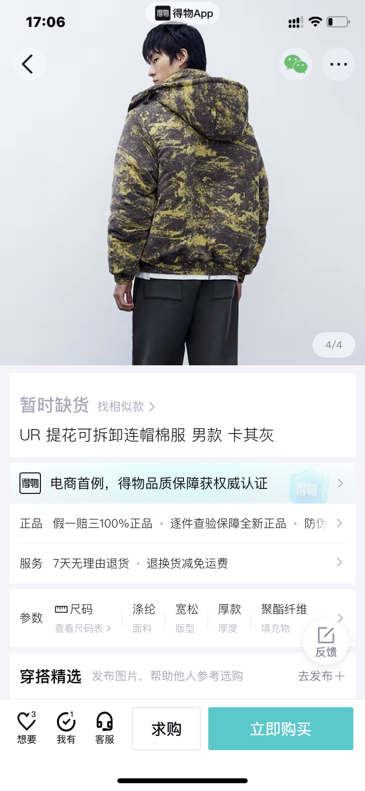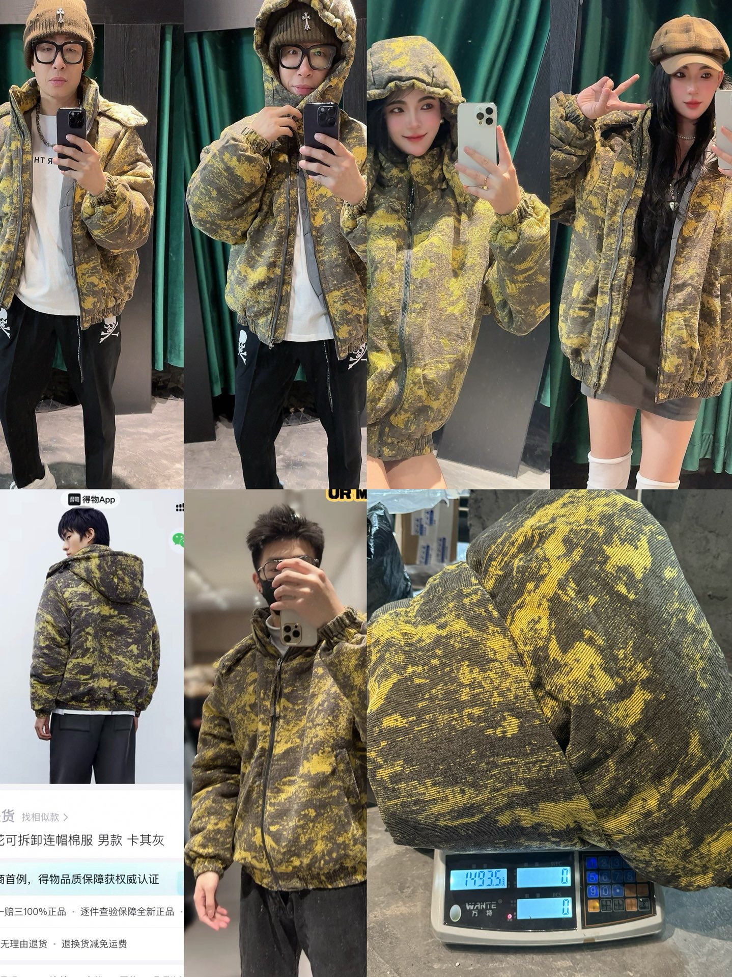 纯原U&R代工厂刚下线的!巨高克重.净克重1493.5g ‼️!吊牌价899! 扫码可入U&R官网!⚠️ 纯原.品质无敌无敌!得物全网断货🔥 U&R男款提花可拆卸连帽棉服‼️UR这款男款提花可拆卸连帽棉服的加棉设计在保暖、轻便、品质和版型方面都表现出色,是冬季保暖又时尚的不二之选。男女都可以穿哈!我们穿的是M效果哈!很大很保暖