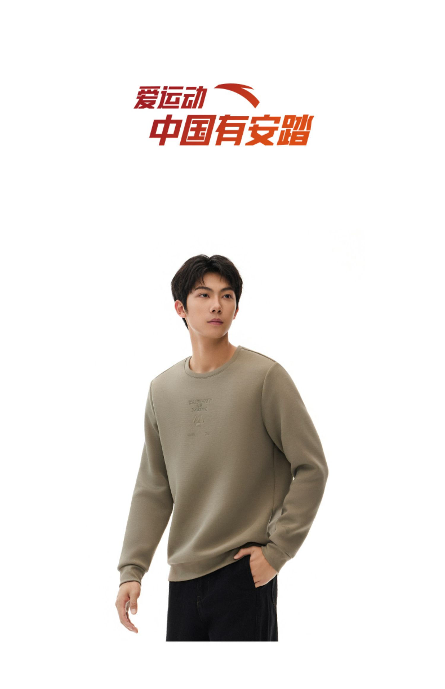 【299任选2件】安踏简约套头衫卫衣男士春季新款修身圆领长袖运动上衣152517702S