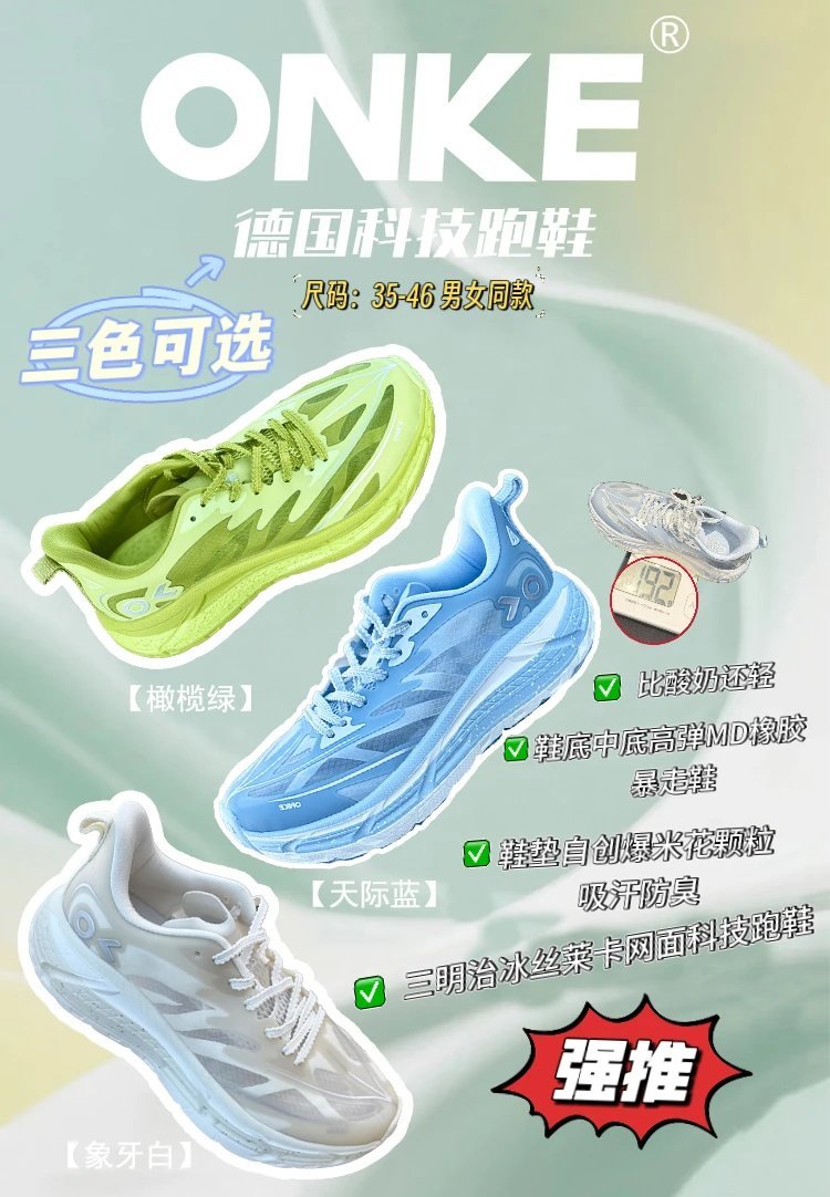 【产品名称】:ONKE德国三明治冰丝莱卡网面科技跑鞋