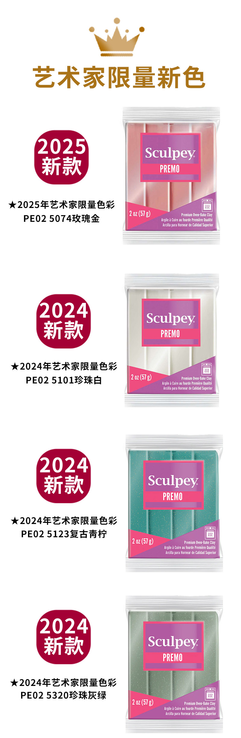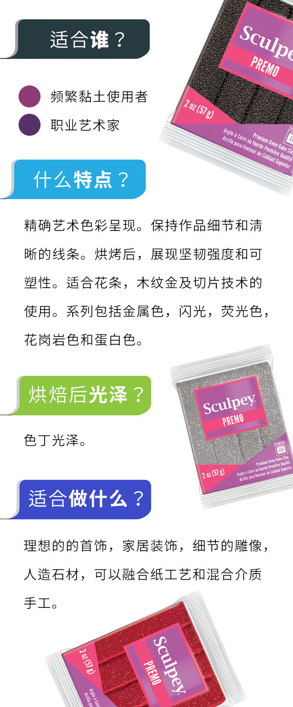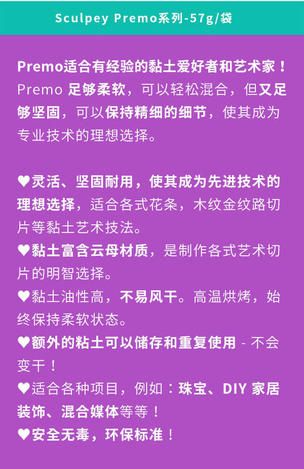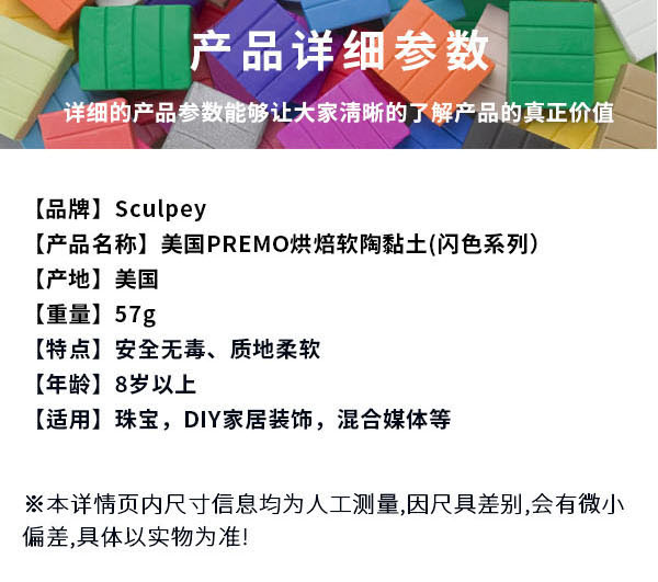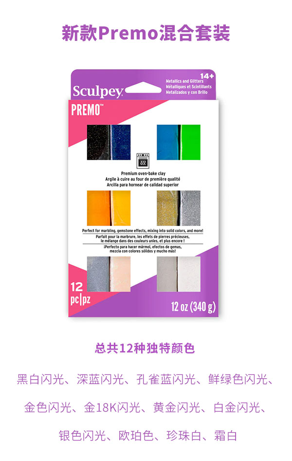 美国PREMO烘焙软陶黏土闪色系列57克