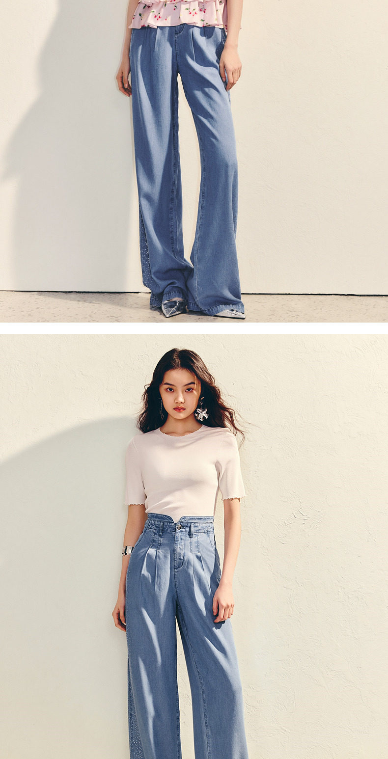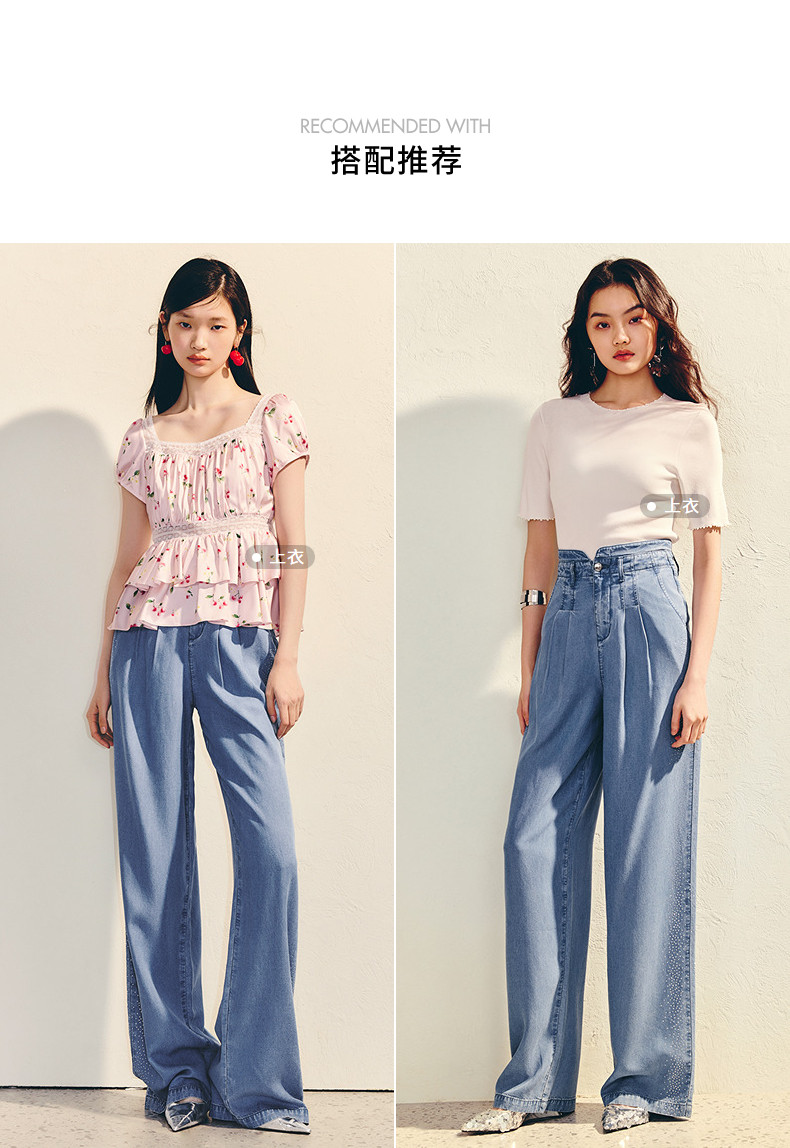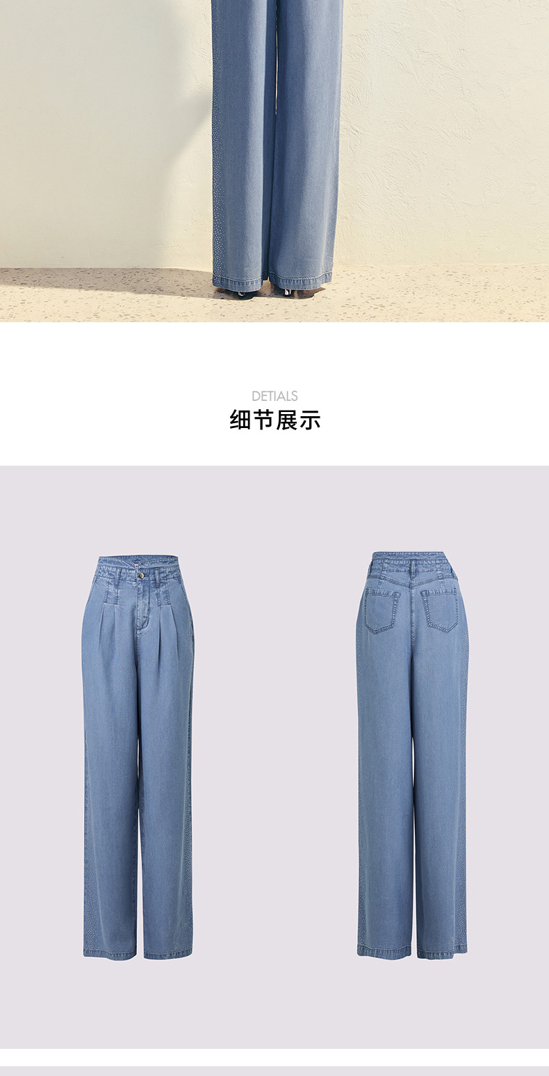 【SGPR】精致日常直身牛仔裤天丝莱赛尔高腰阔腿裤夏(货号:MU86PA004)