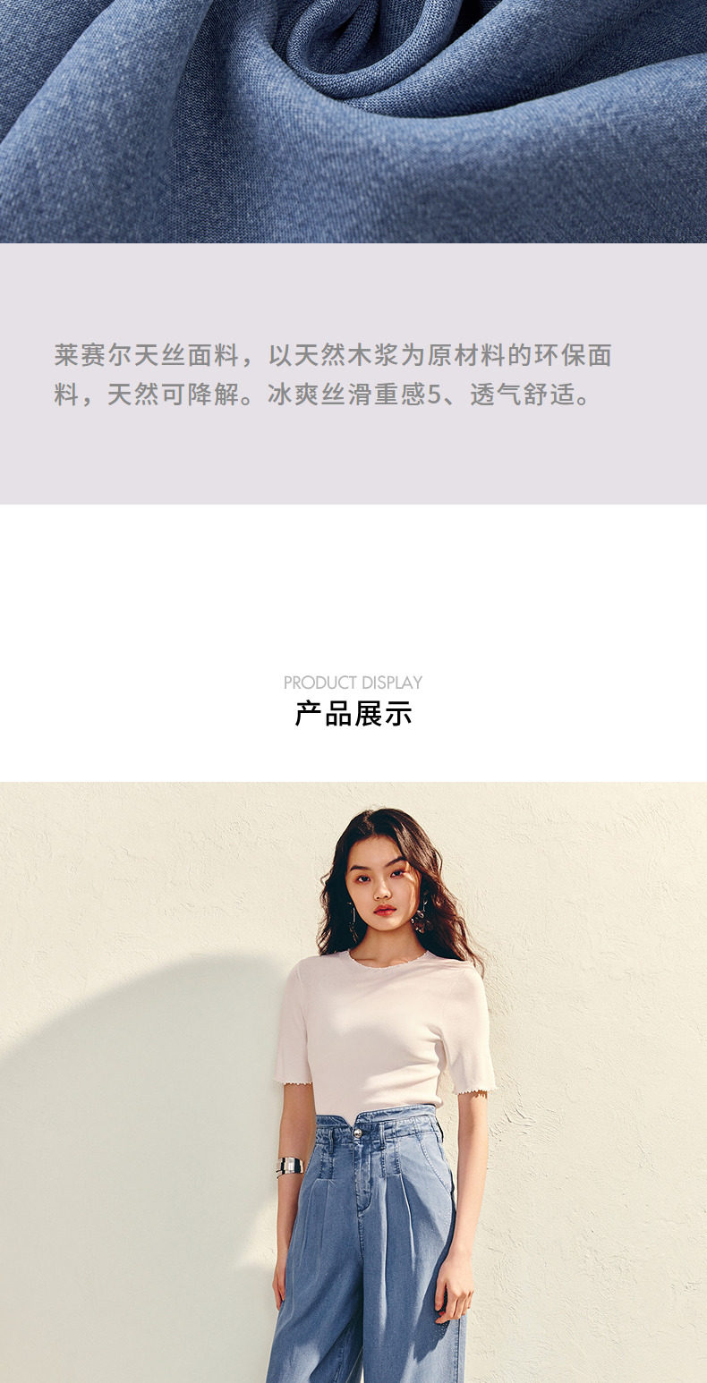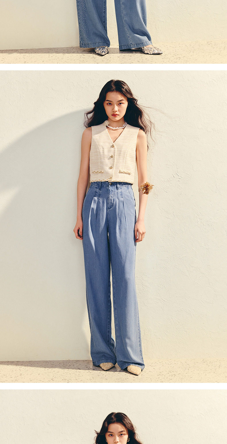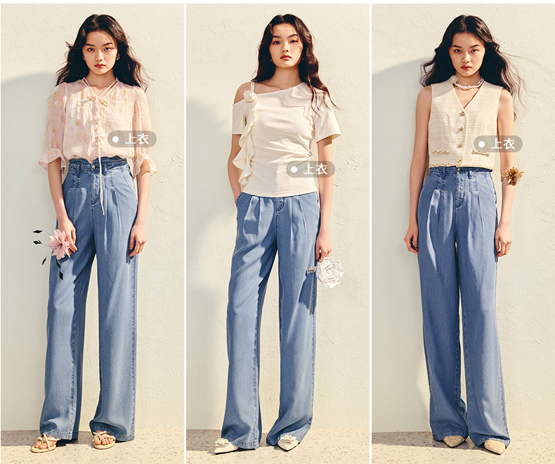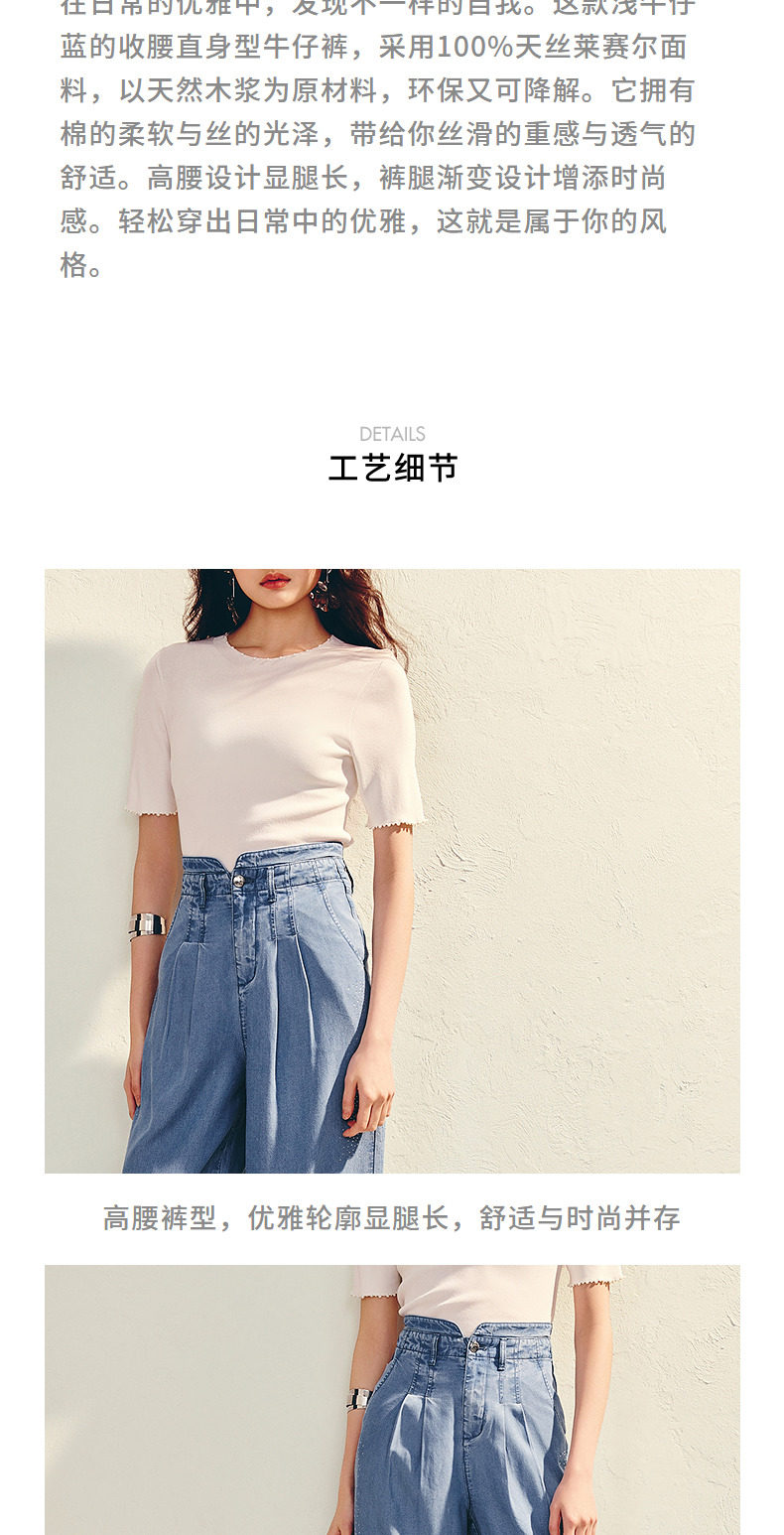 【SGPR】精致日常直身牛仔裤天丝莱赛尔高腰阔腿裤夏(货号:MU86PA004)