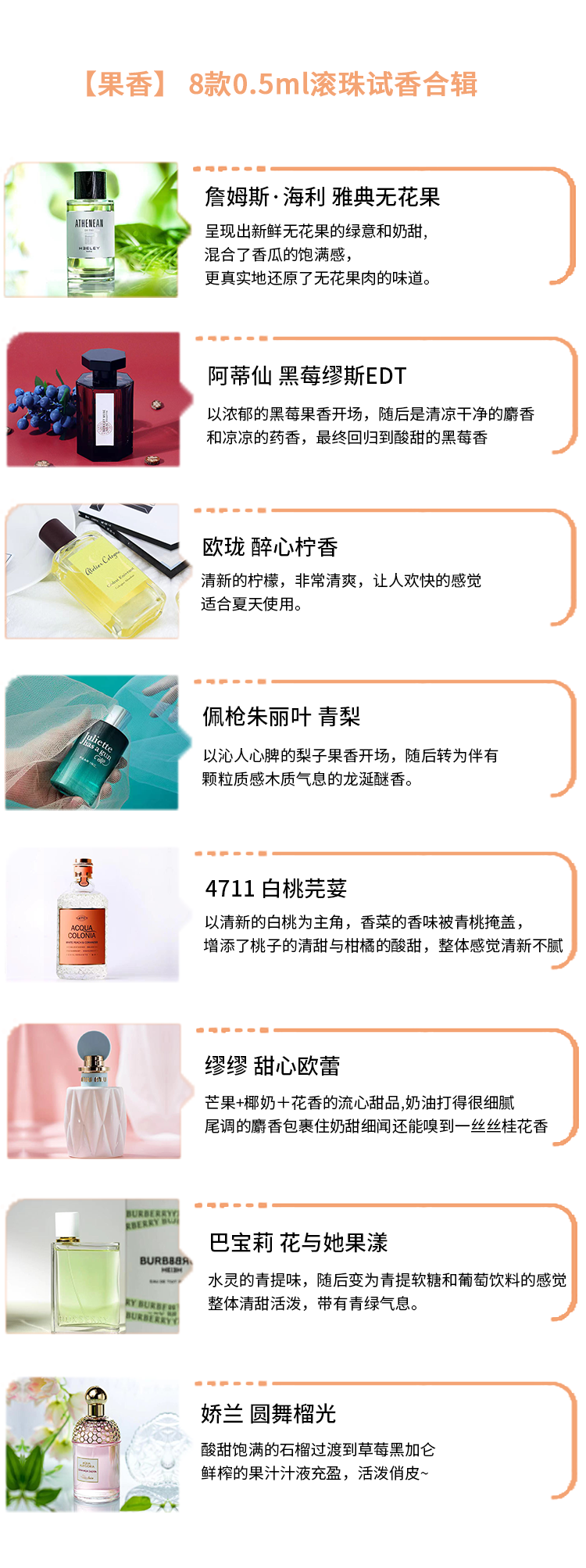 【果香】合辑 8款0.5ml滚珠试香——甜蜜邂逅,活力满溢