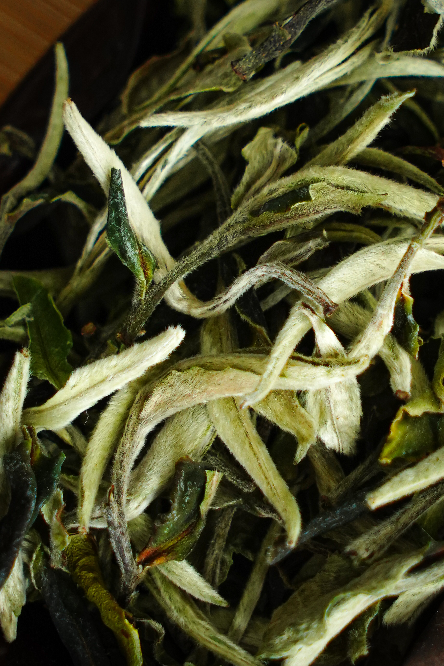 优质云南古树茶鲜叶,芽头选料多,满披白毫,如银似雪。