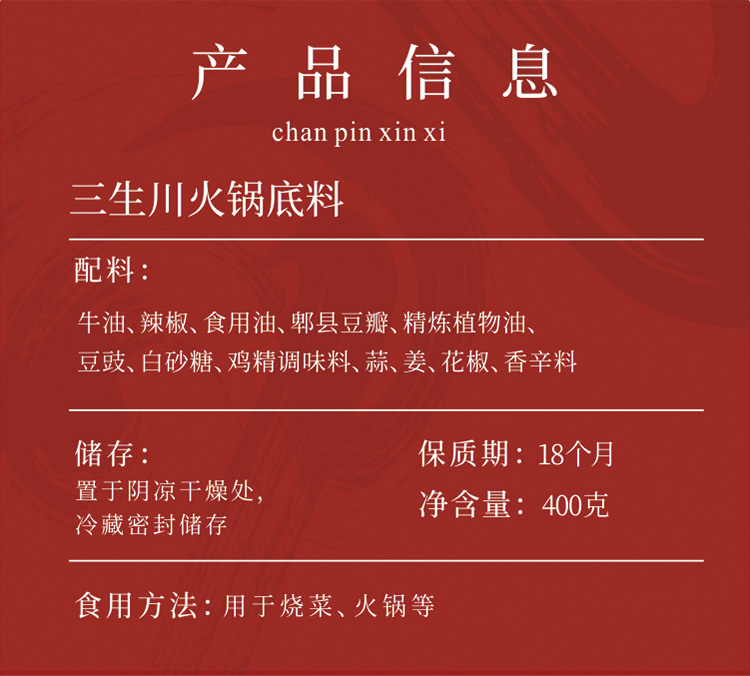 【三生川】 牛油火锅底料