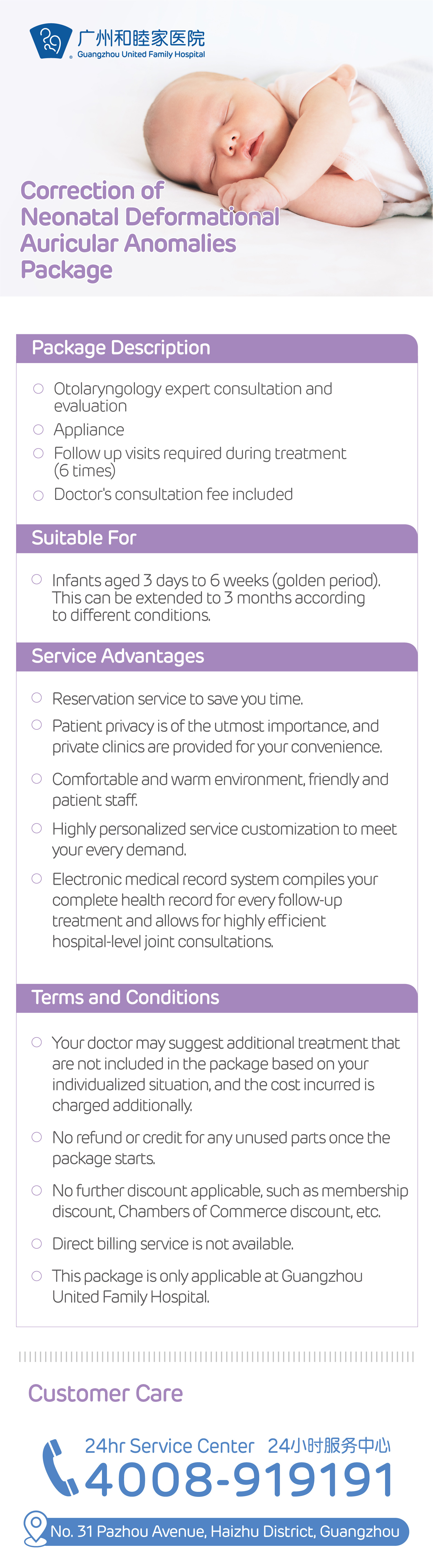 - 广州和睦家医院,提供包括儿科、全科、皮肤科、口腔科、妇产科、产后康复科、24小时急诊等在内的综合服务,预约热线4008-919191