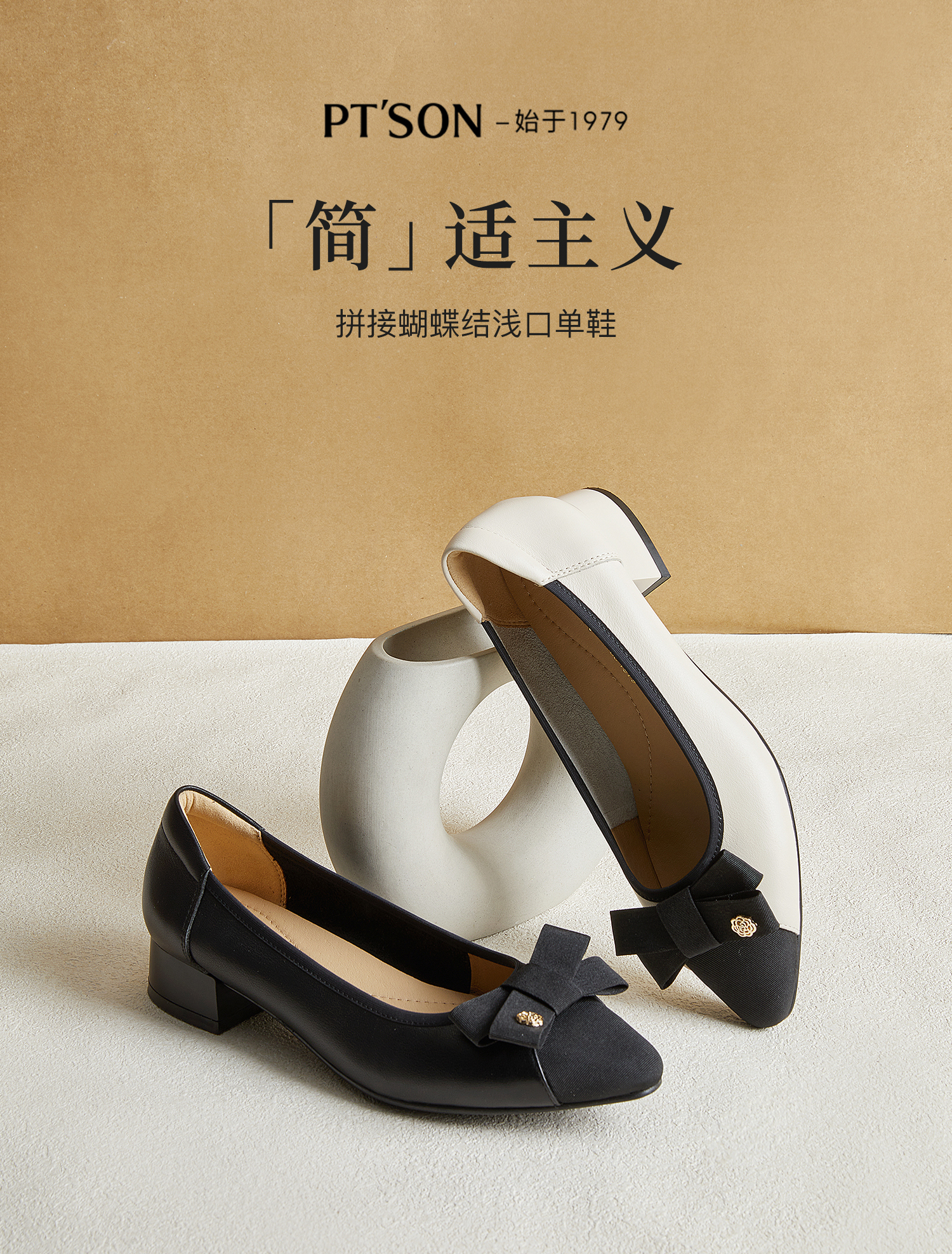 PT'SON百田森 头层牛皮女鞋粗跟单鞋女2025新款春真皮妈妈鞋子