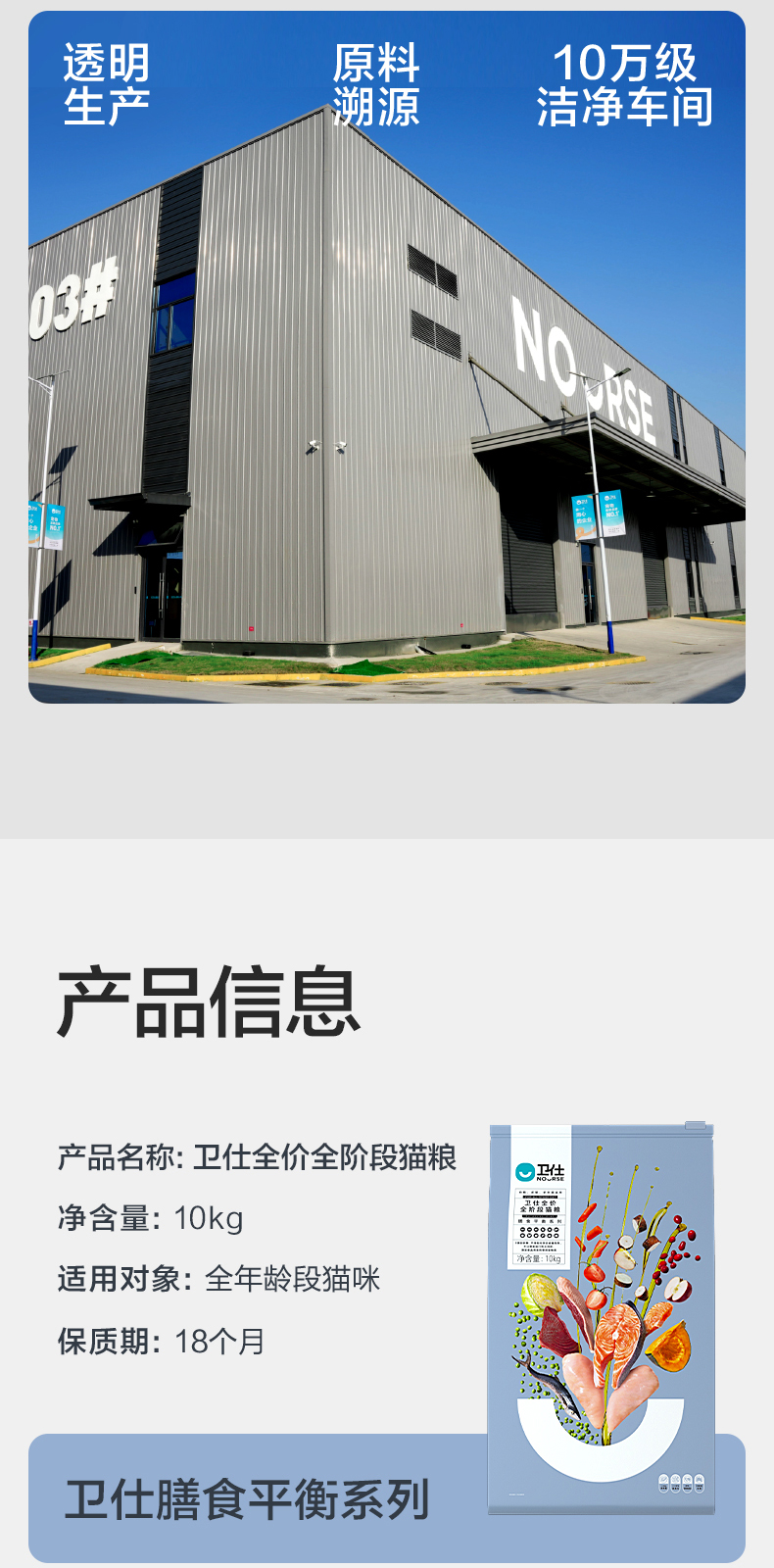 「粉丝限定福利」卫仕 膳食平衡全价全阶段无谷猫粮10kg大包装