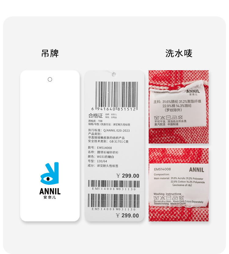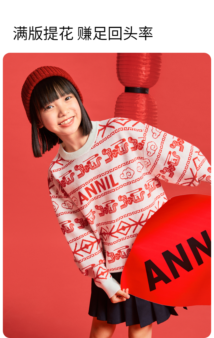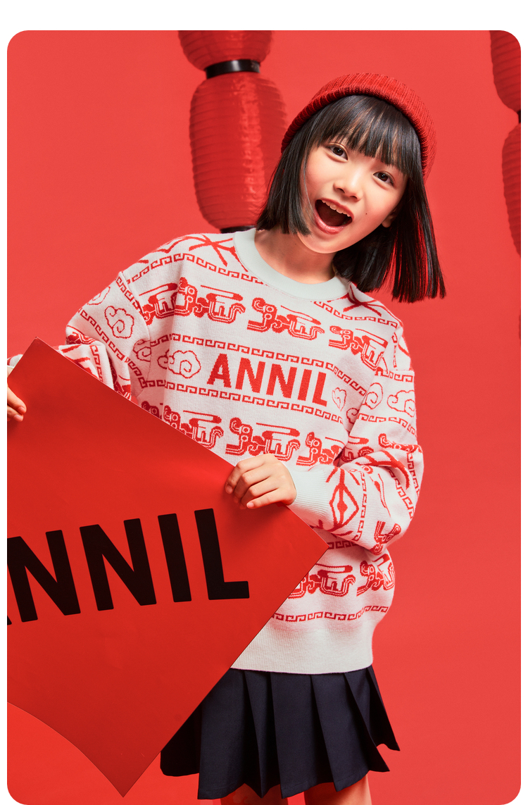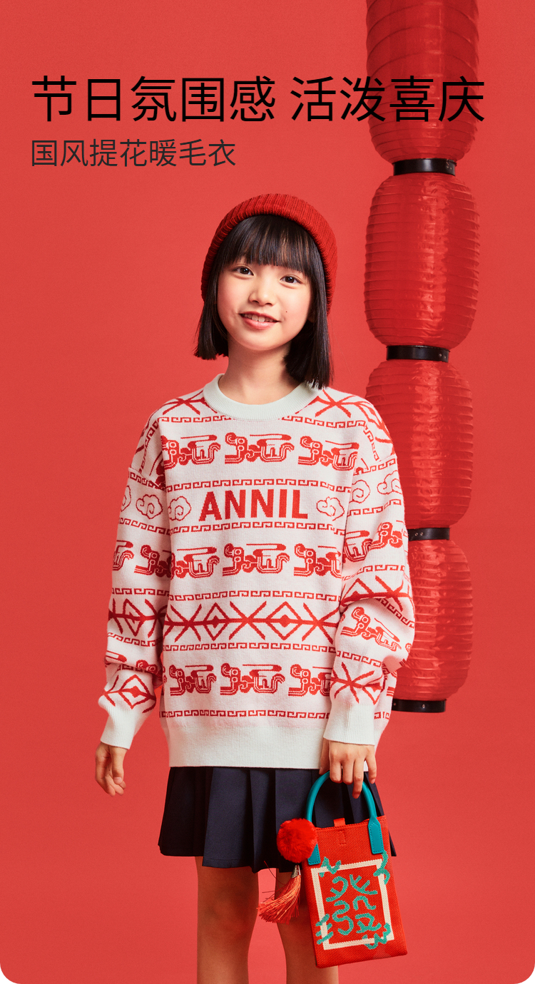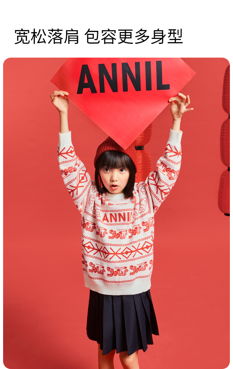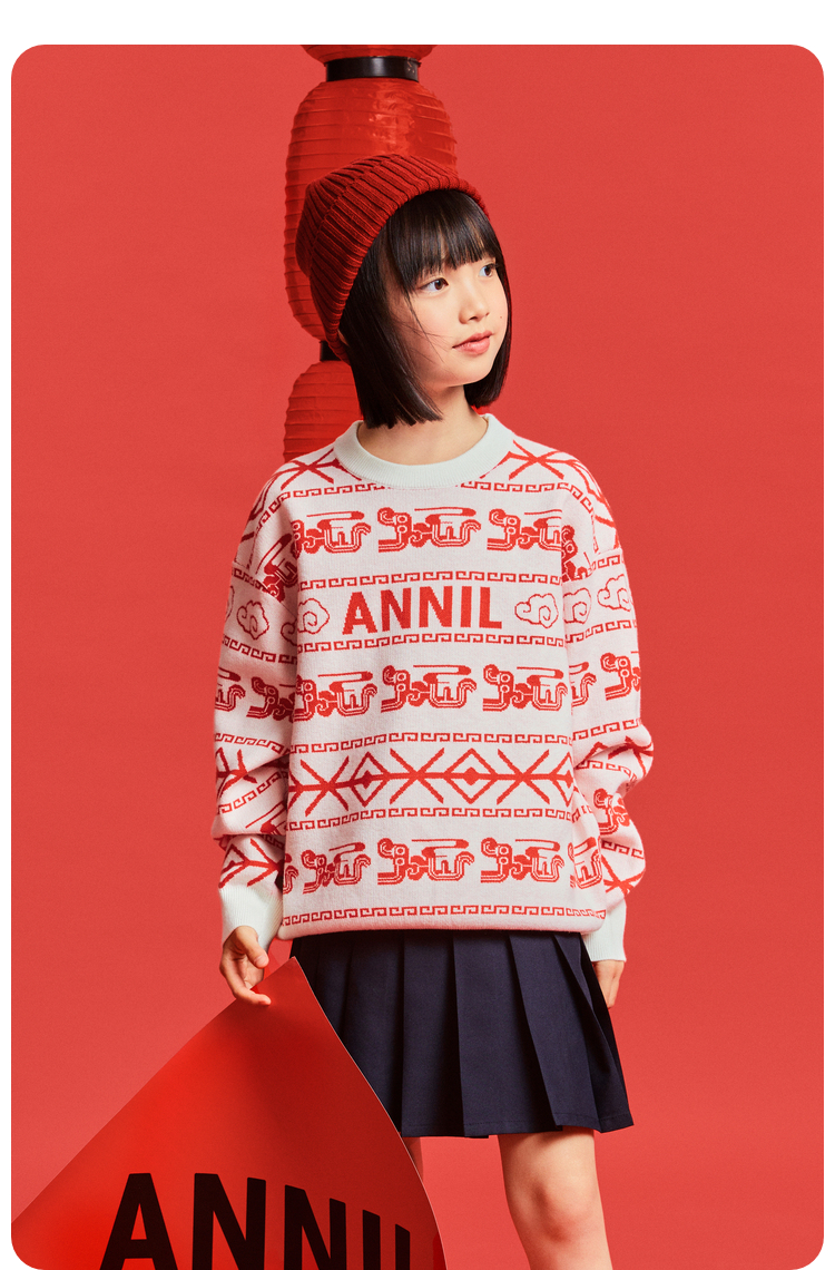 男女童圆领长袖针织衫春季新款安奈儿童装EM514008