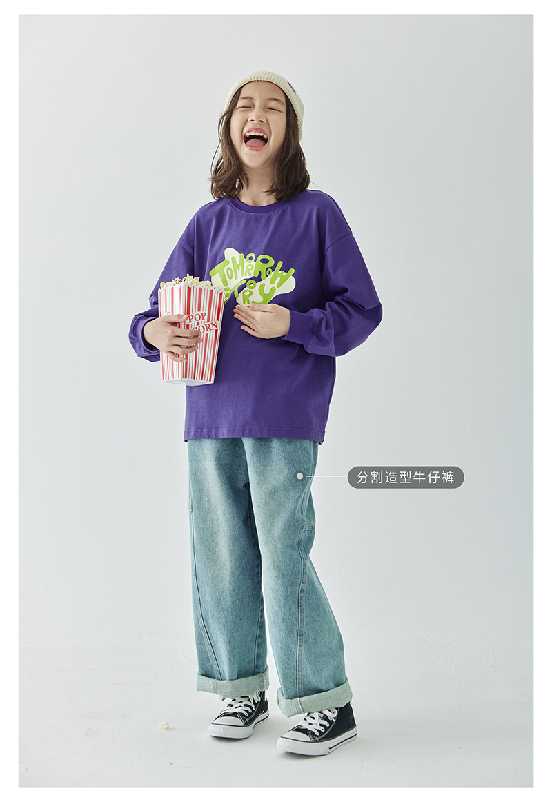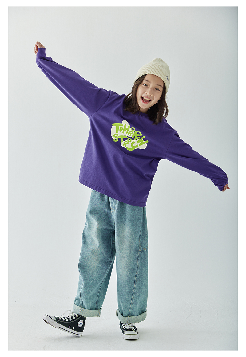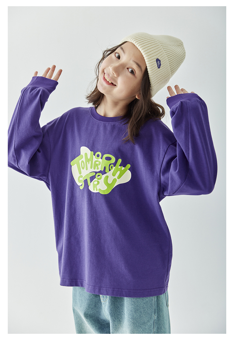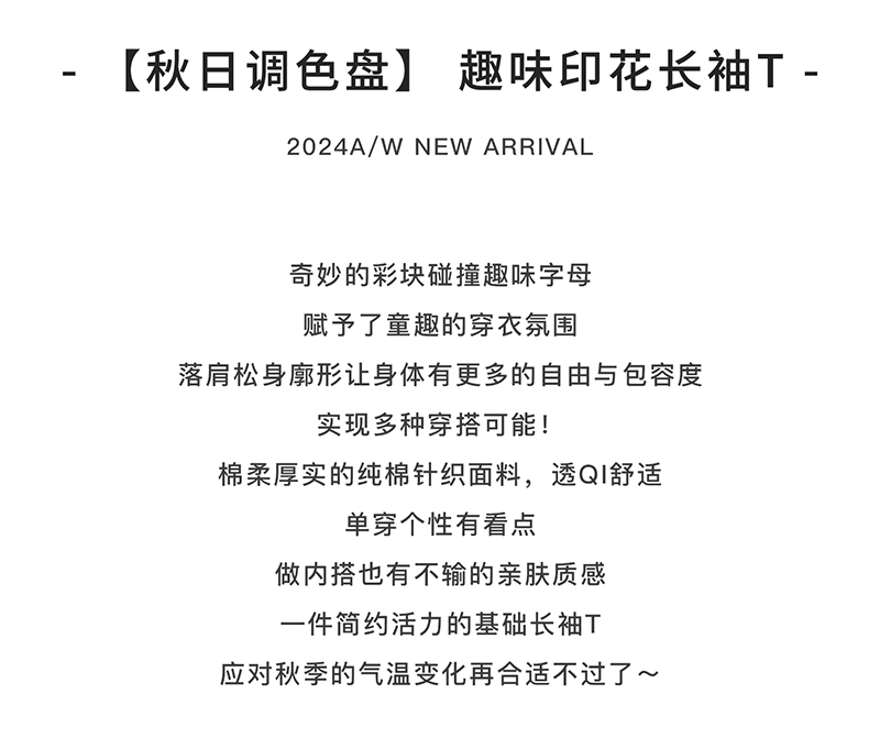 棵初新款童装秋季趣味字母印花长袖T恤亲子简约活力柔软上衣