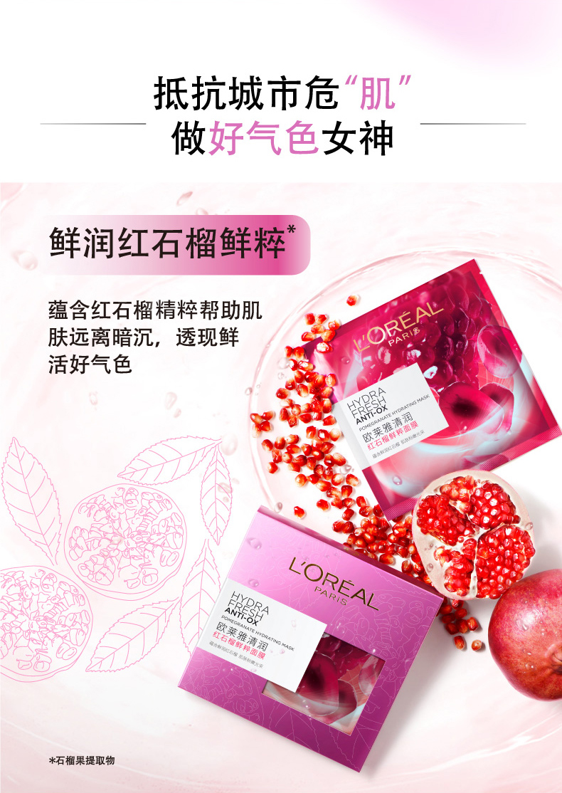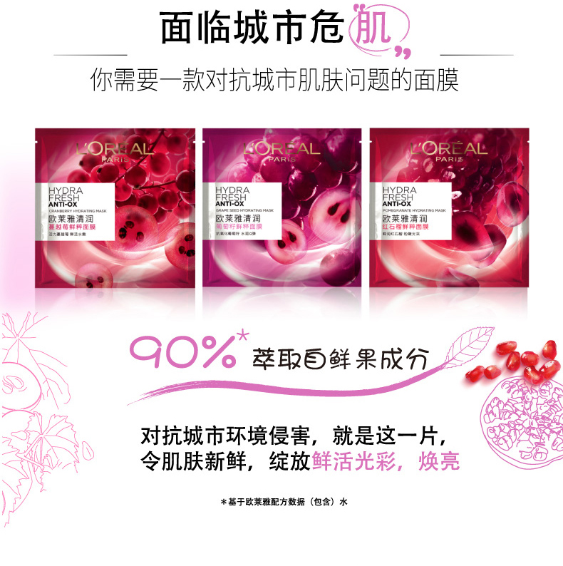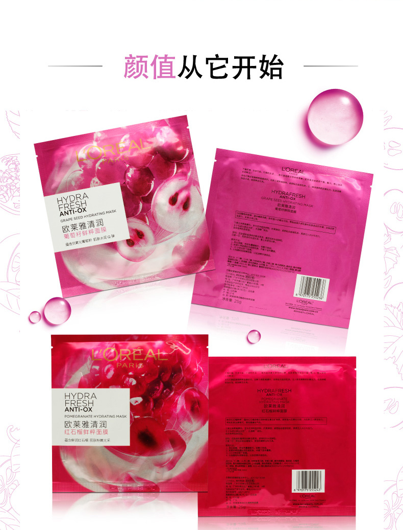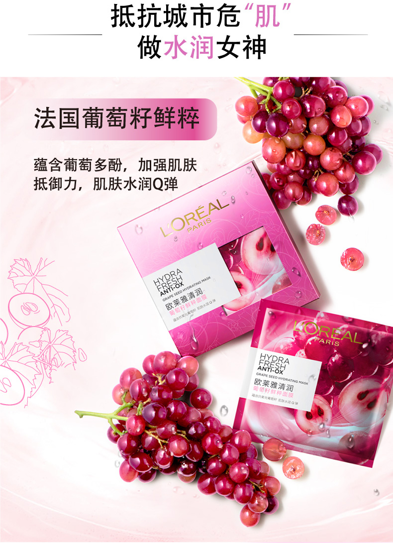 法国欧莱雅L'OREAL清润葡萄籽鲜粹面膜15pcs/盒