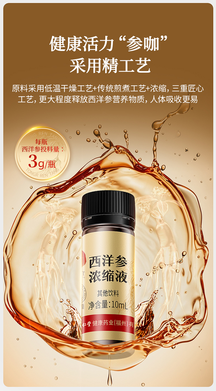 【正宗同仁堂品牌】北京同仁堂 青源堂 西洋参浓缩液 送长辈 150mL (10mLx15) SY