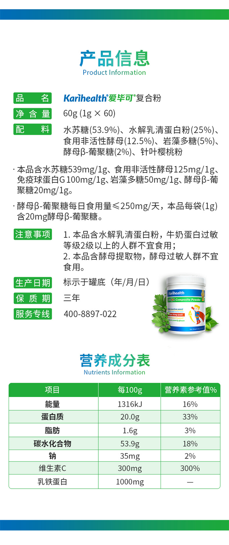 凯睿海恩爱毕可乳铁蛋白60g