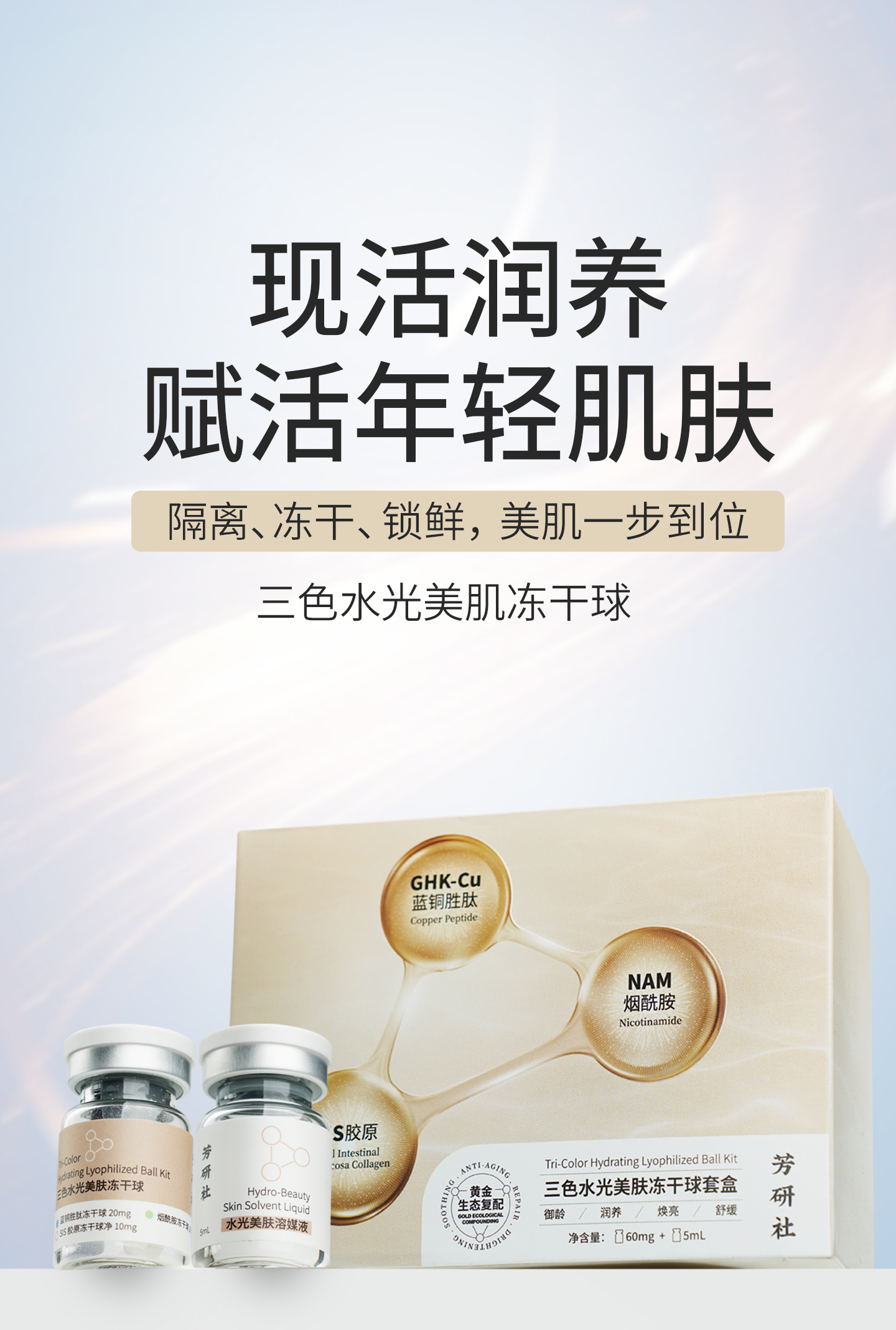 水光美肤三色冻干球蓝铜胶原蛋白烟酰胺