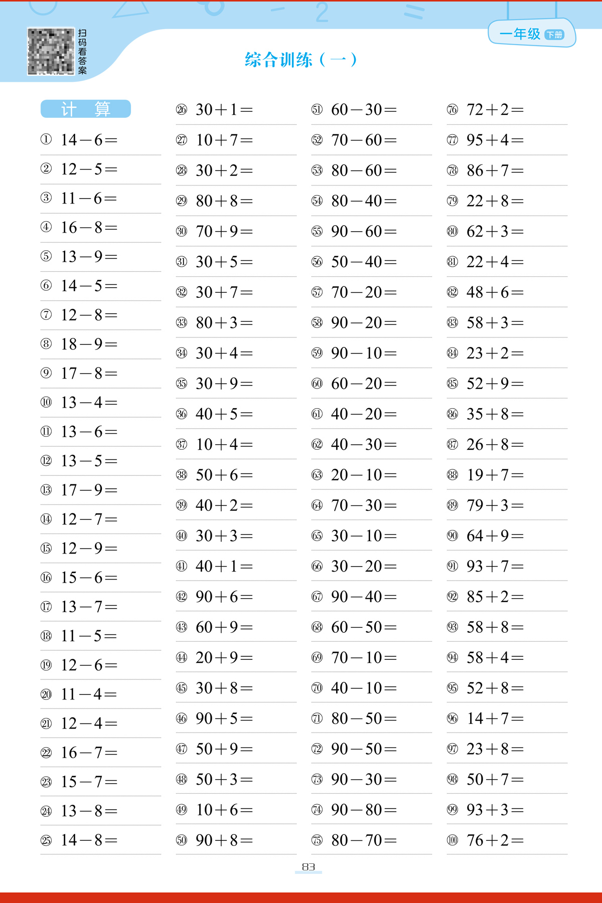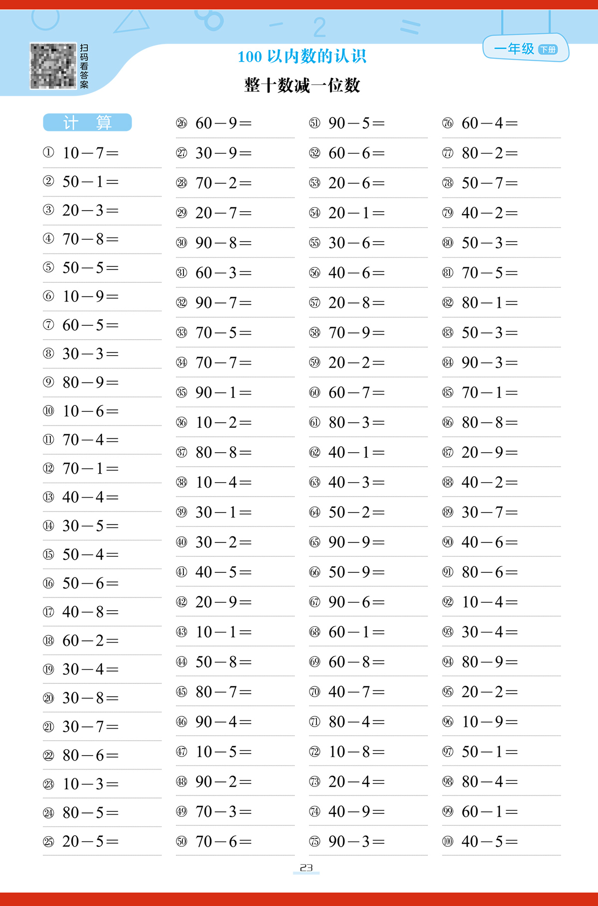 小学生一年级下册口算题卡10000道/数学同步练习/应用题