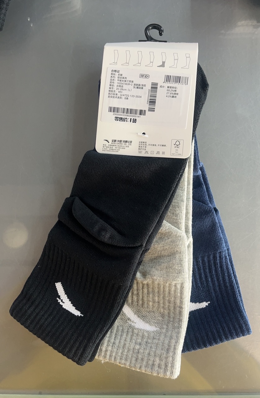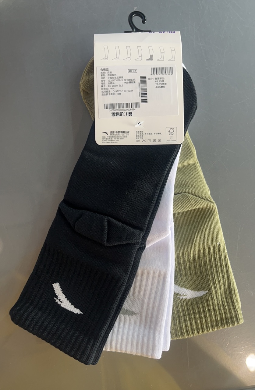 安踏三双装运动袜长袜透气吸汗防臭中长袜足球篮球跑步袜健身袜子192547363R