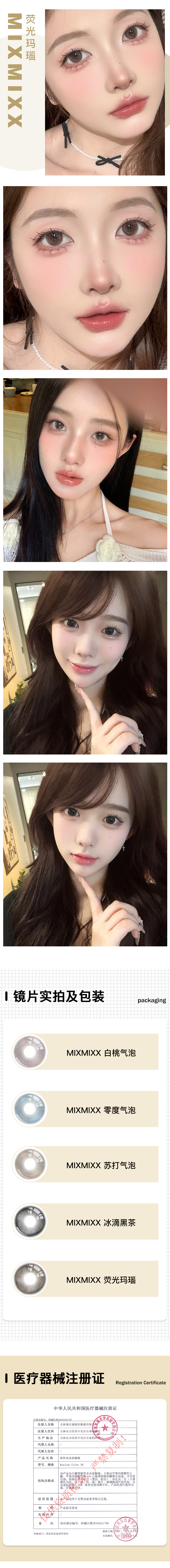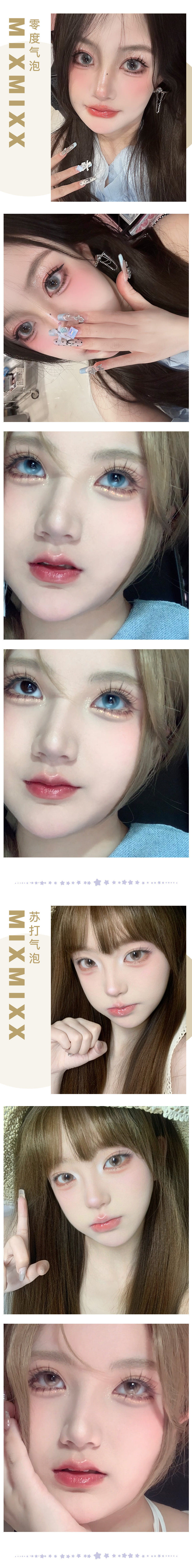 MIXMIXX / 美瞳半年抛 /白桃气泡/零度气泡/苏打气泡/冰滴黑茶/荧光玛瑙 / 2片入 / 14.2mm / 双倍明显扩瞳