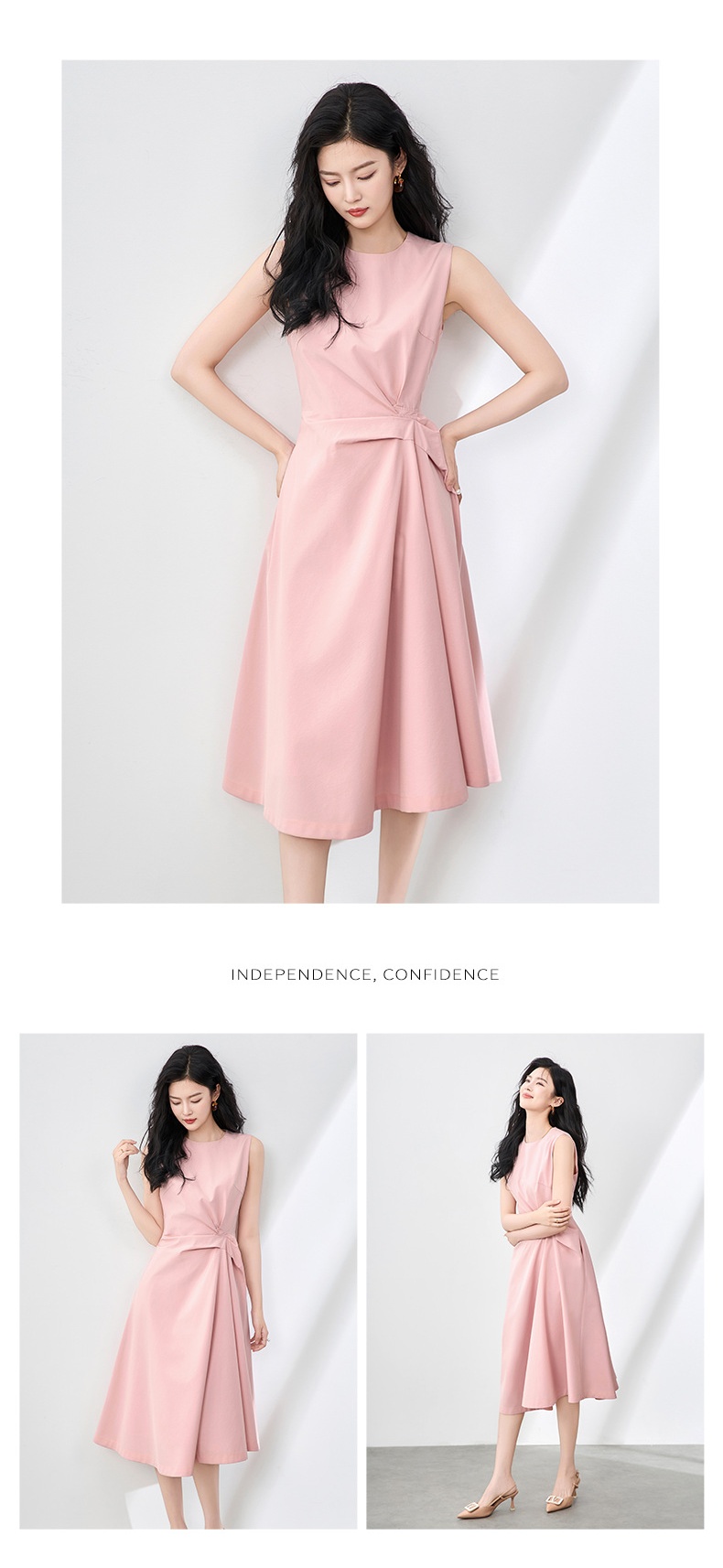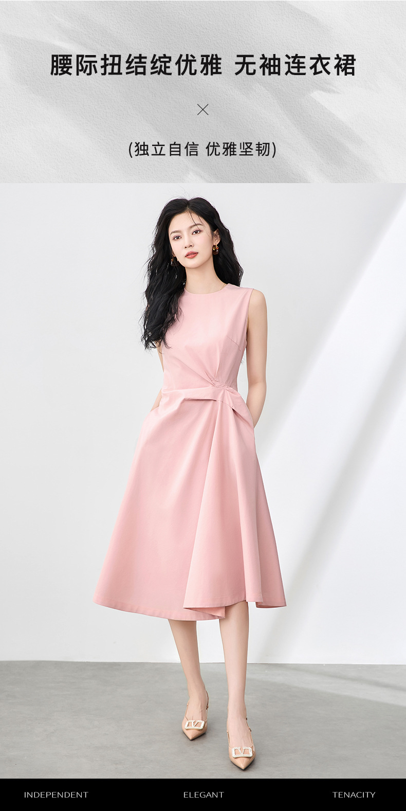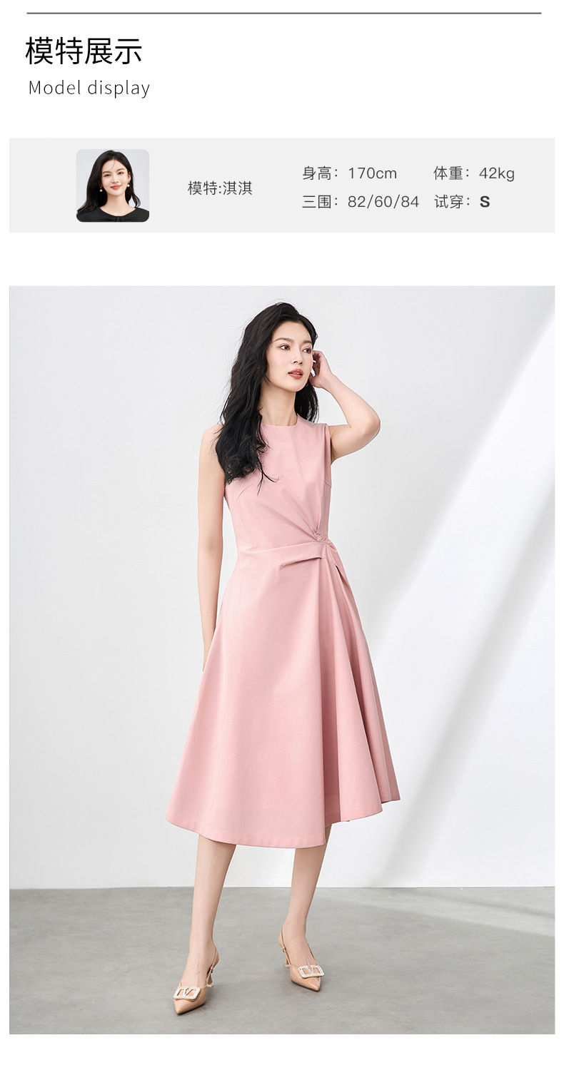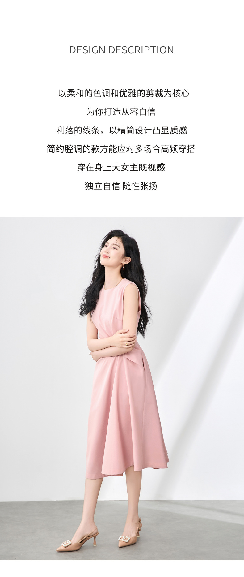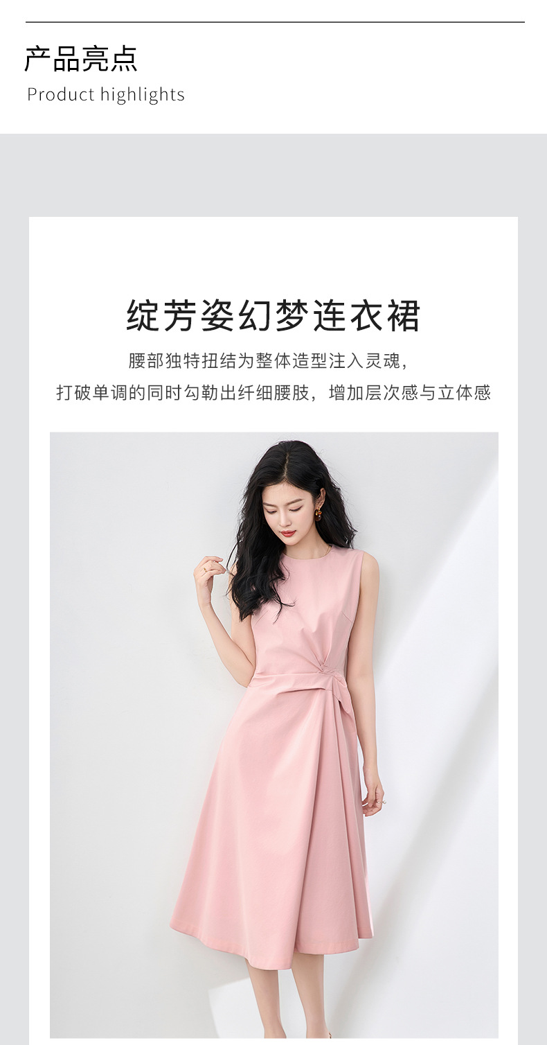 「高货wl」全新升级【铂金会员312/天猫419/差价107】(95118)洛诗琳法式极简气质连衣裙2025夏季优雅收腰褶皱无袖裙子