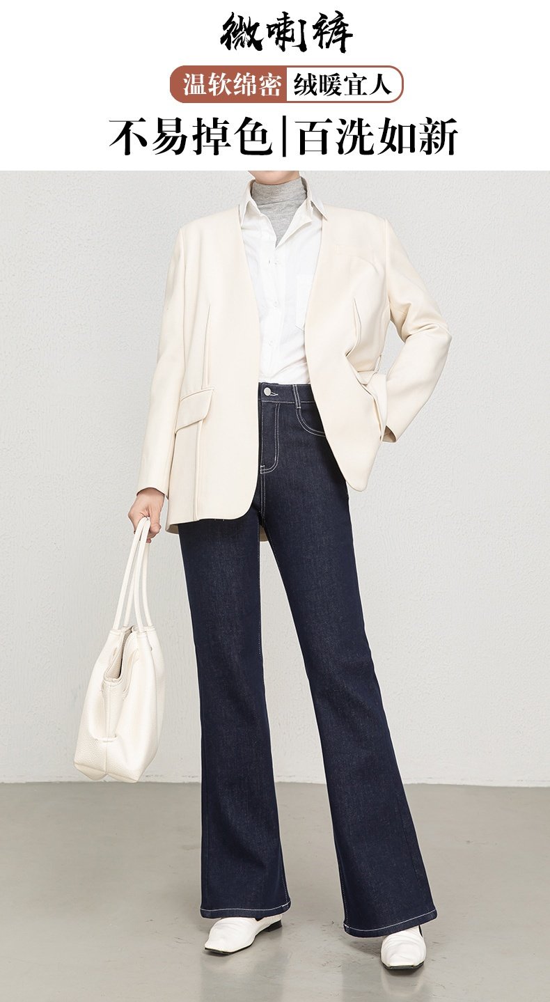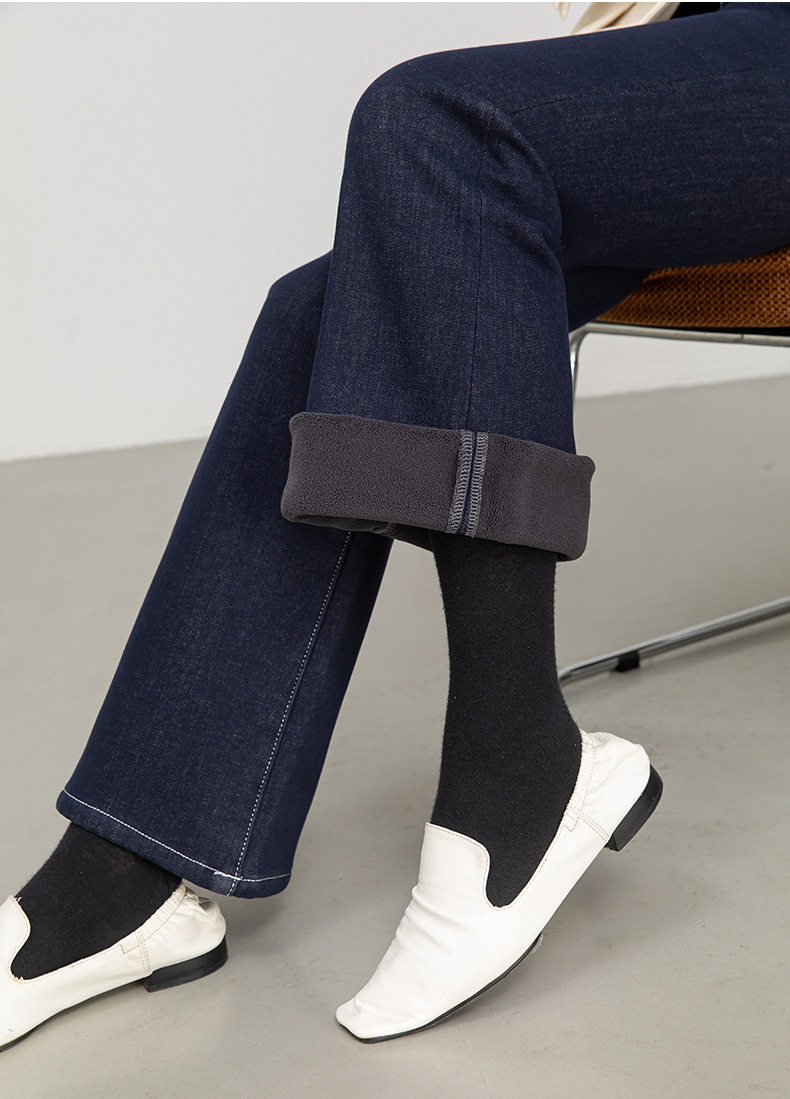 「高货rg」全新升级【铂金会员192/天猫259/差价67】(35601)洛诗琳复合加绒牛仔裤2025冬季新款高腰显瘦直筒微喇长裤