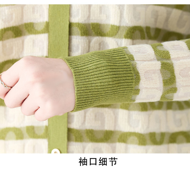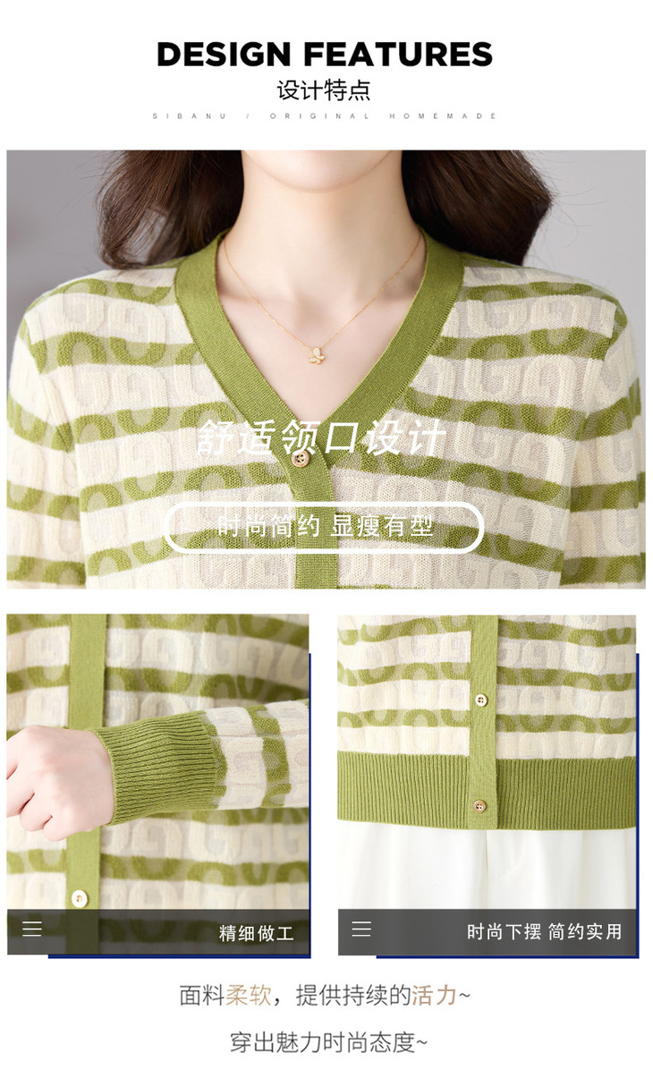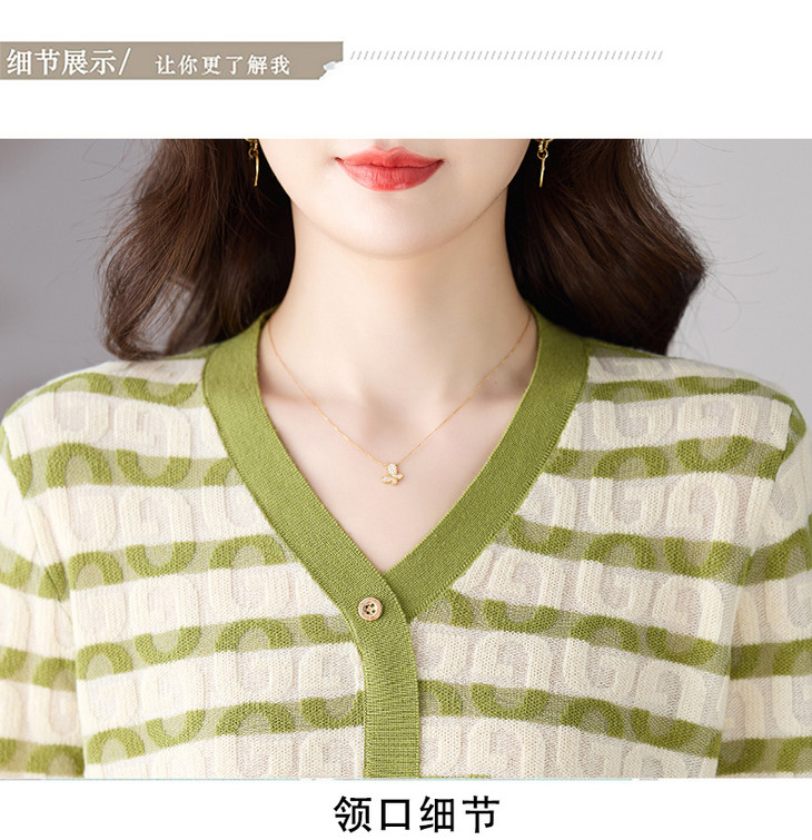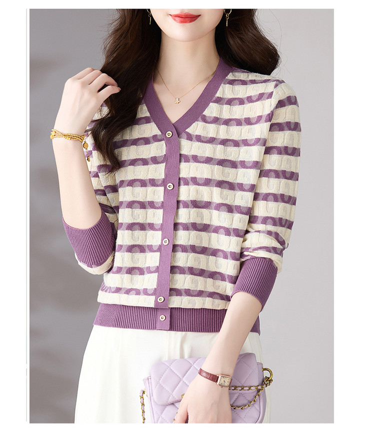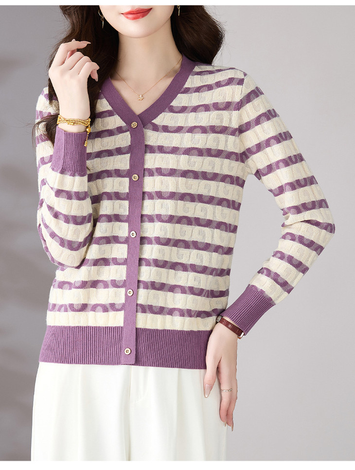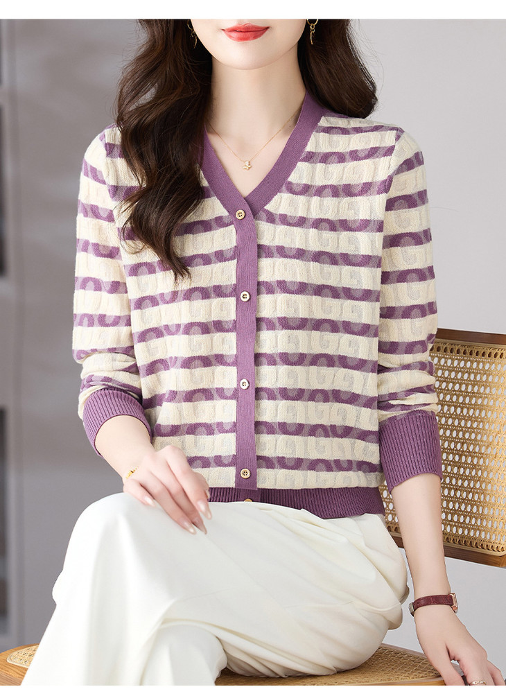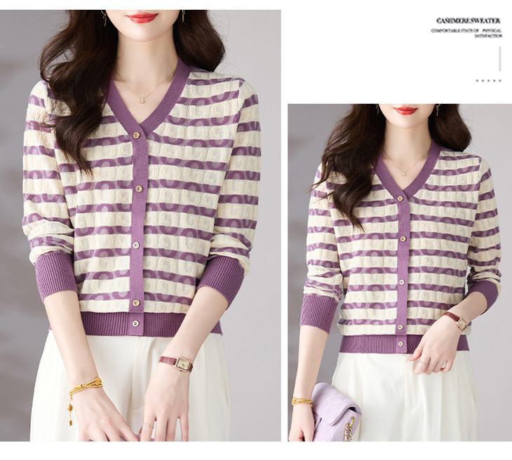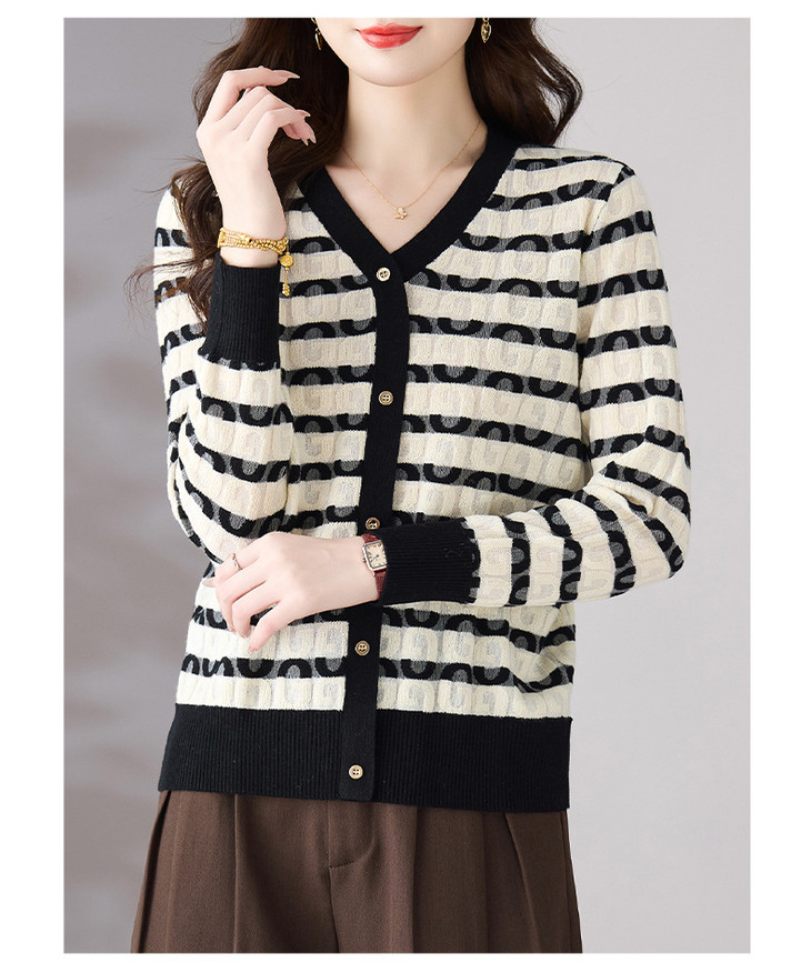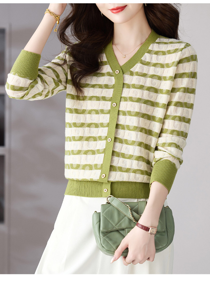 V领条纹针织衫,小香风长袖上衣打底小衫CC-101-82067