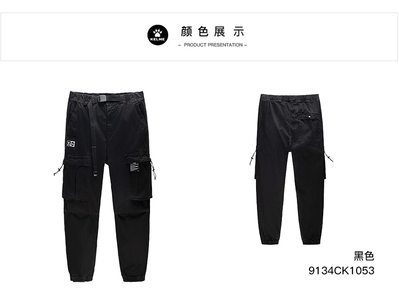 卡尔美工装裤男2022早春秋冬束脚潮流百搭长裤宽松休闲裤子