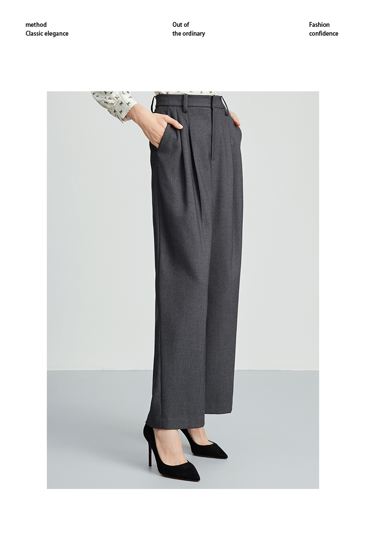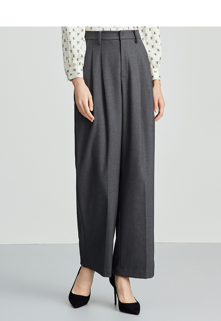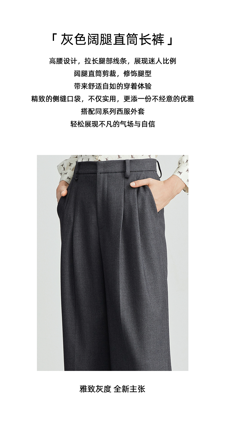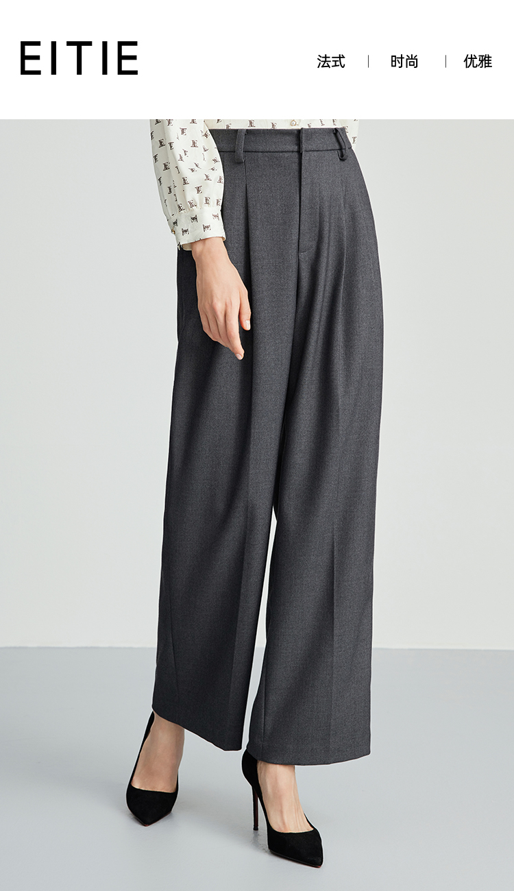 EITIE爱特爱高级感灰色高腰阔腿垂坠显瘦西裤休闲裤秋季新款C2405404