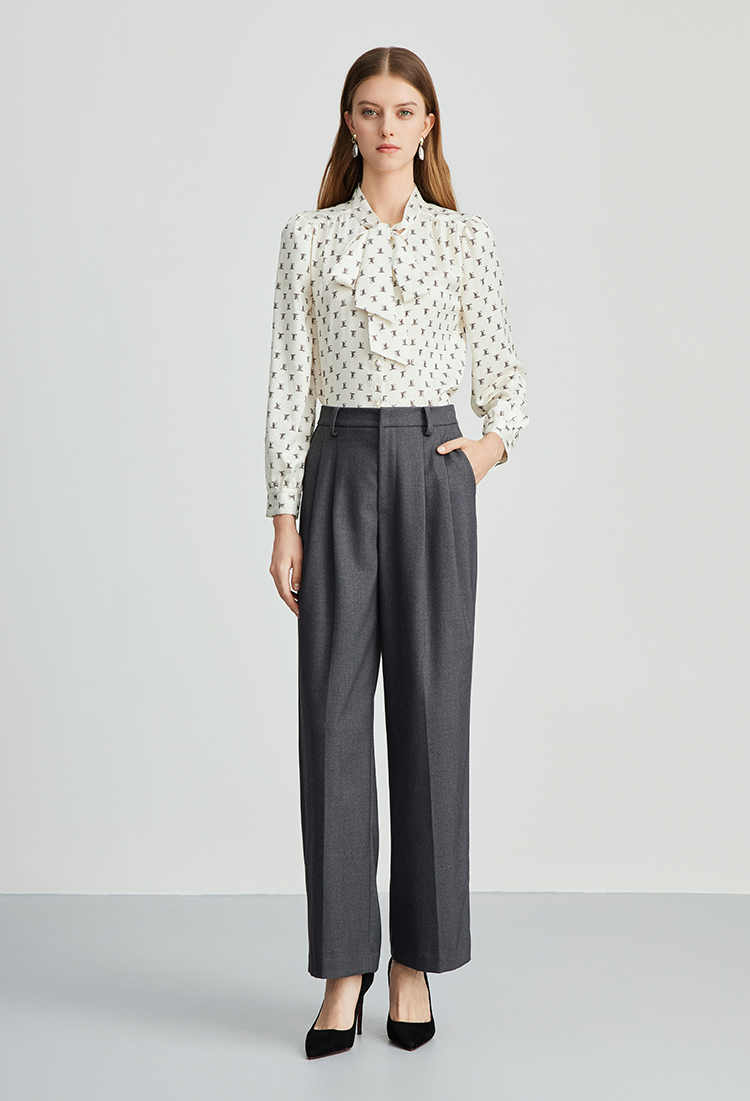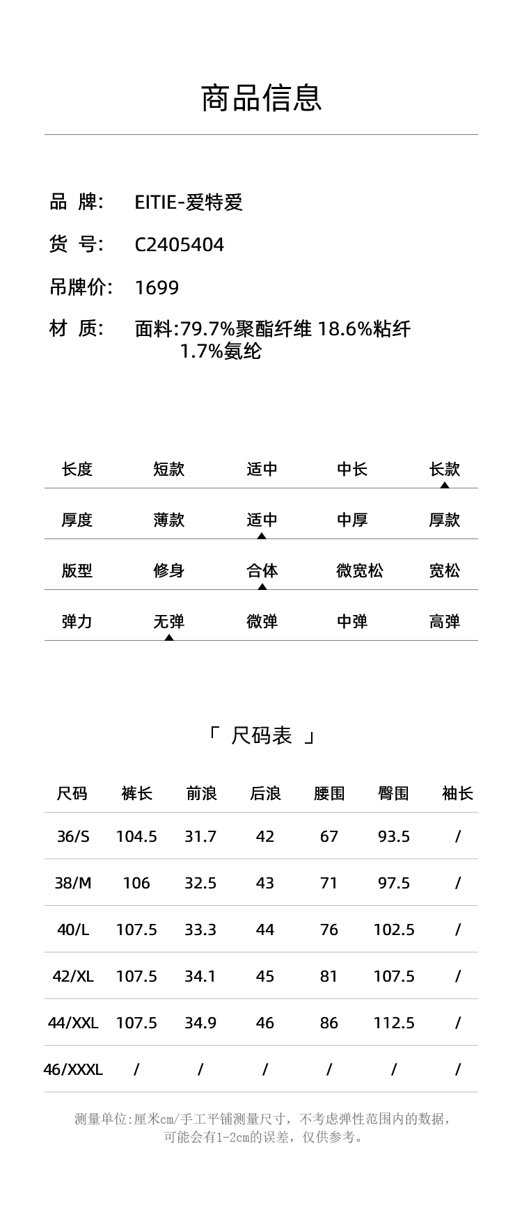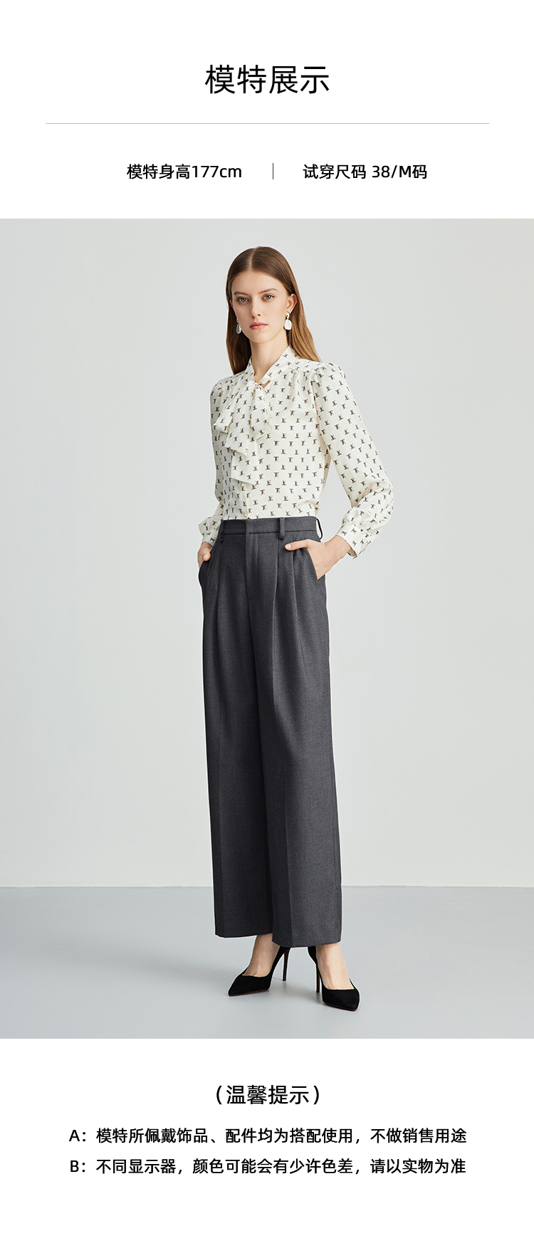 EITIE爱特爱高级感灰色高腰阔腿垂坠显瘦西裤休闲裤秋季新款C2405404