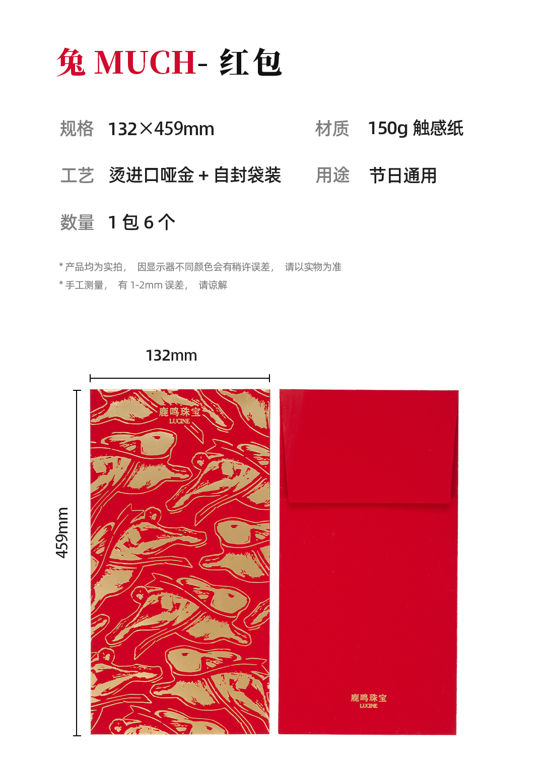鹿鸣 2023年兔年新款利是红包烫金过年结婚送礼压岁钱创意中式