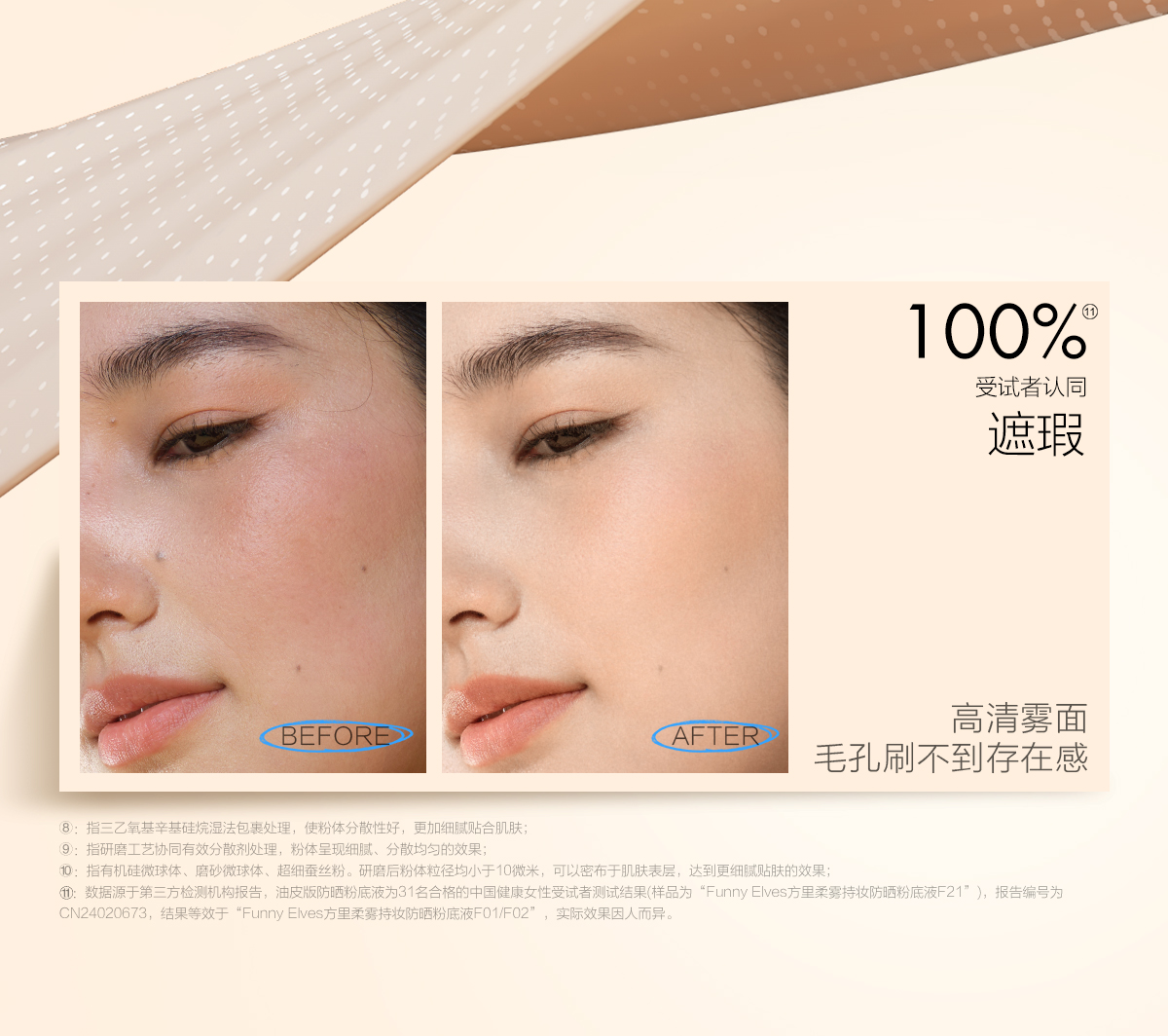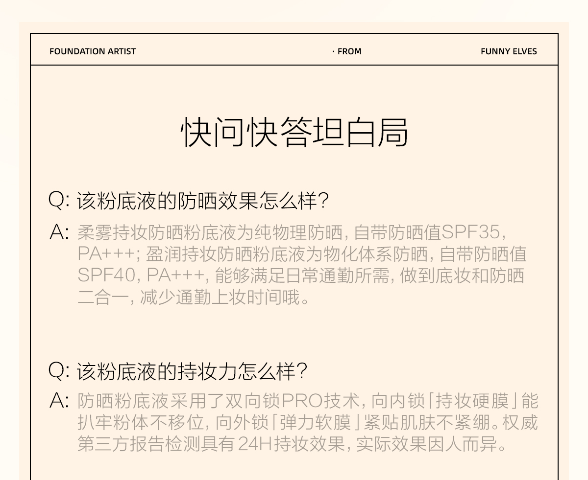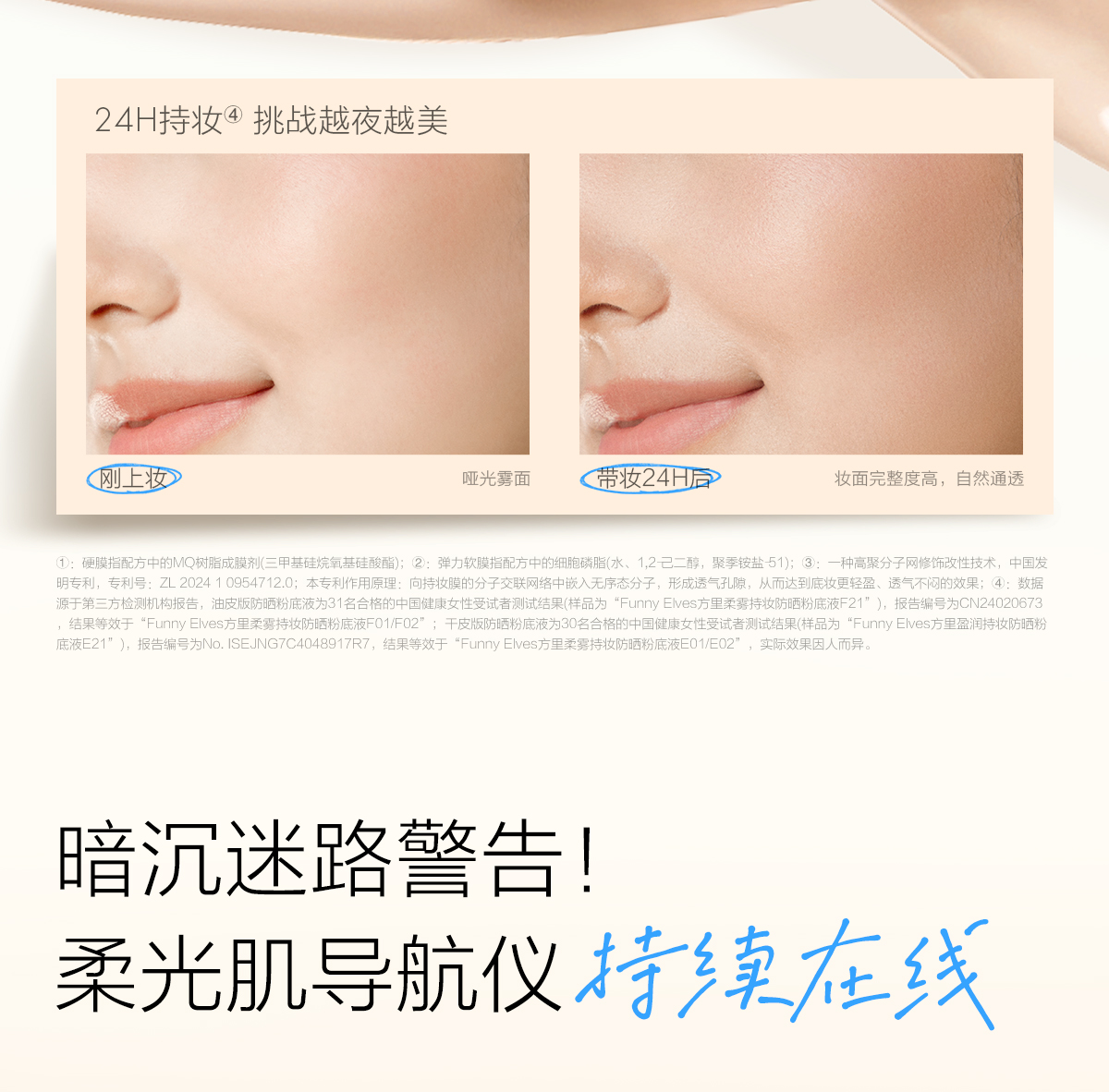 【新品防晒粉底液】Funny Elves方里防晒粉底液25ml轻薄服帖遮瑕持久不脱妆持妆油皮spf35