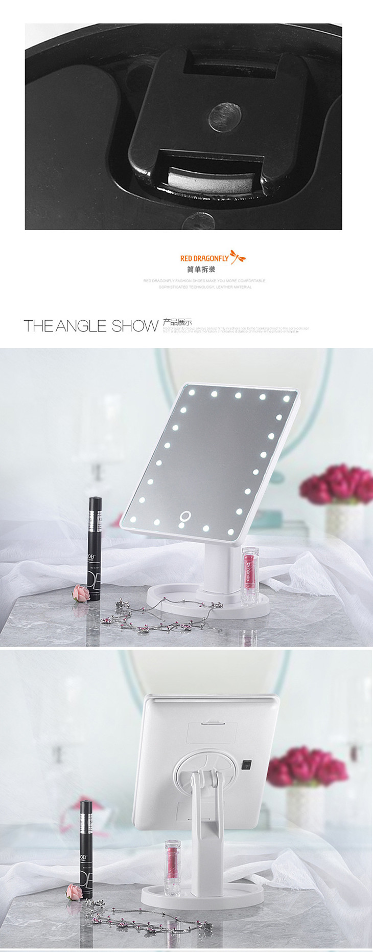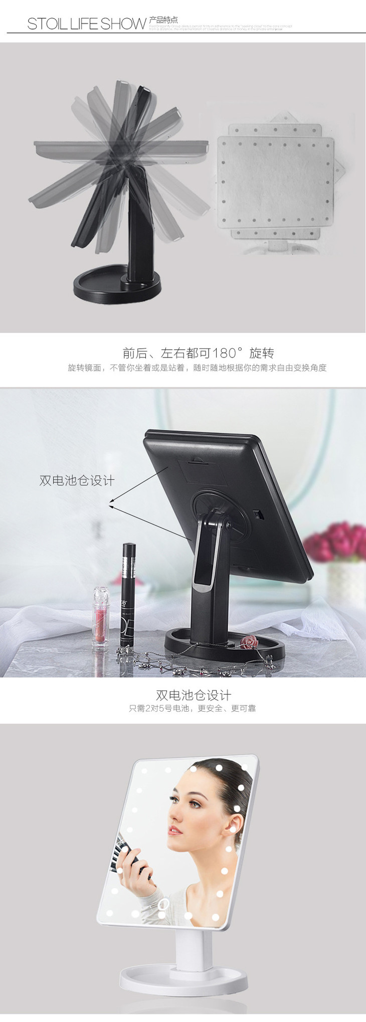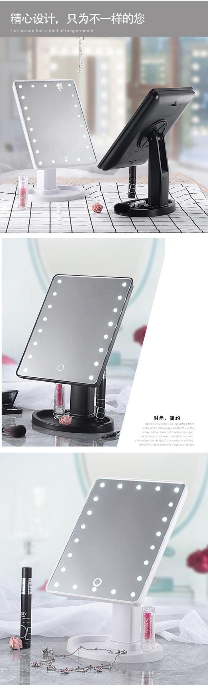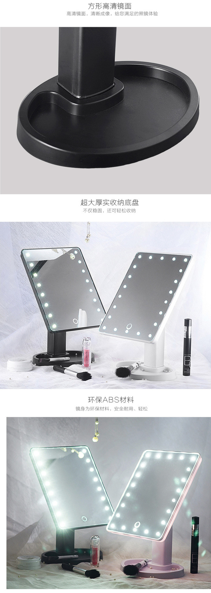 便携公主镜洗漱清洁化妆镜带灯触屏台式led灯方形梳妆镜子学生镜
