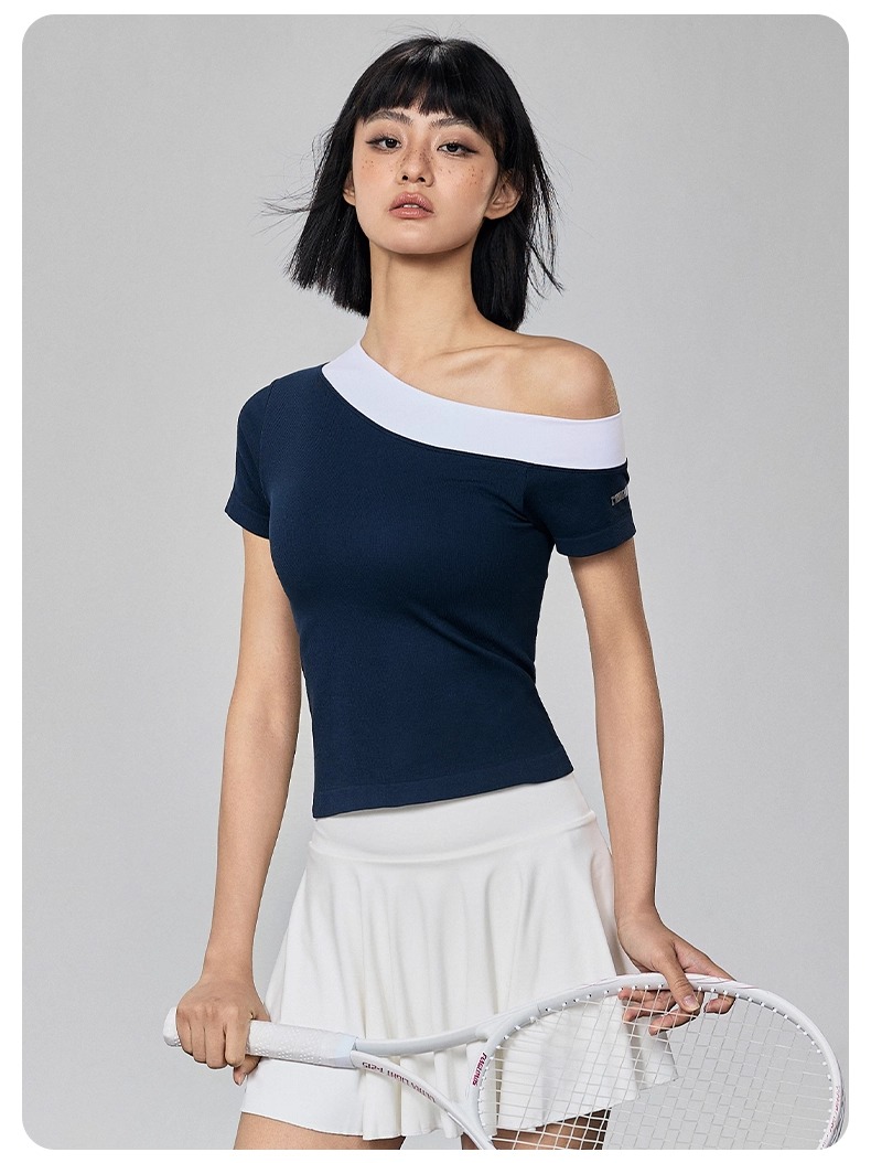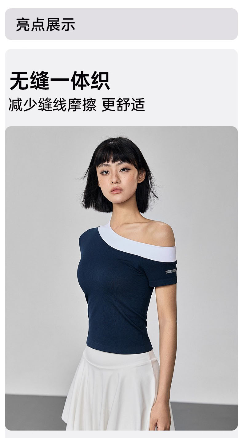Gymicon能量符号 春夏款斜肩撞色短袖运动上衣固定罩杯瑜伽服健身跑步速干户外T恤YASY2506