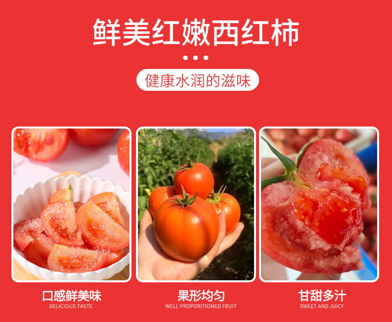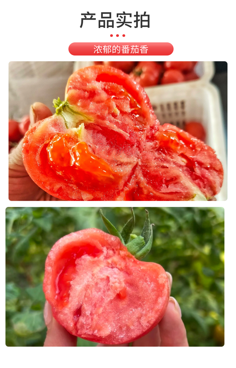 【产品亮点】酸甜爆汁,肉质细腻、沙瓤VC足、最适合生吃的西红柿
