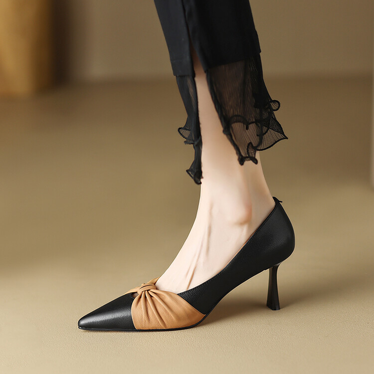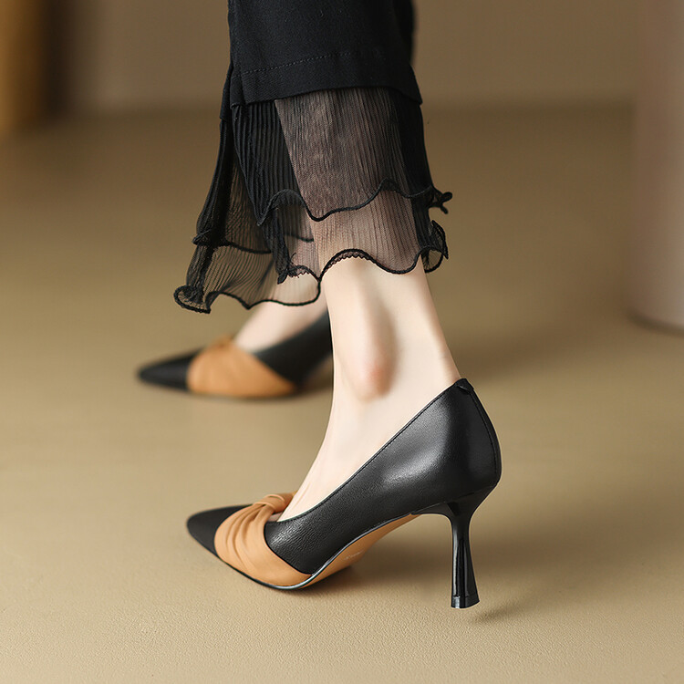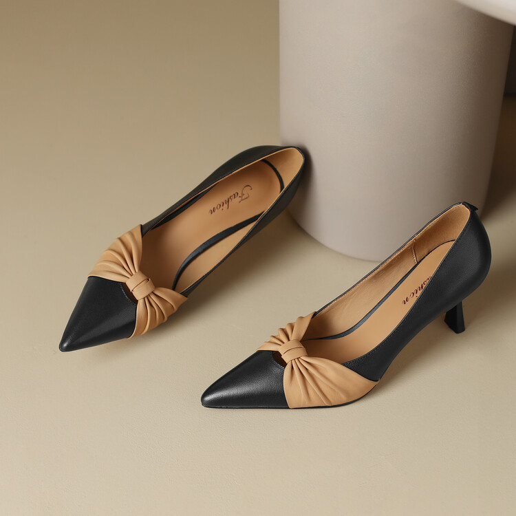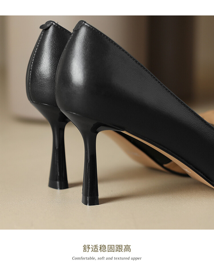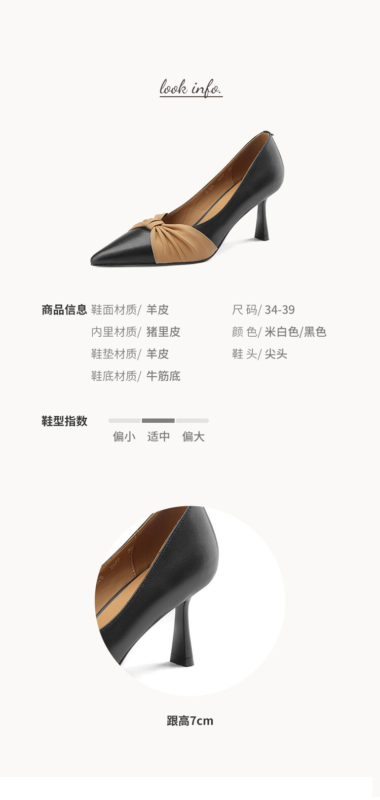 【货号】5677【帮面材质】羊皮【内里材质】猪皮里【鞋垫材质】羊皮垫【鞋底材质】牛筋底【跟高】7CM【颜色】黑色 米白色【尺码】34 35 36 37 38 39
