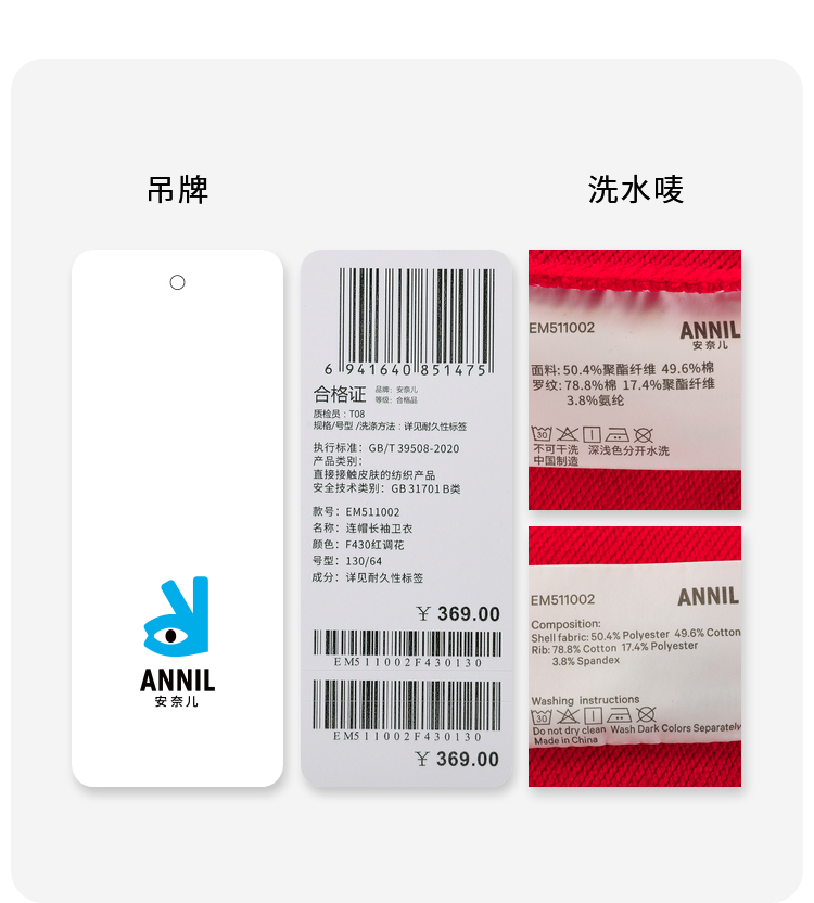 男女童连帽长袖卫衣春季新款安奈儿童装EM511002