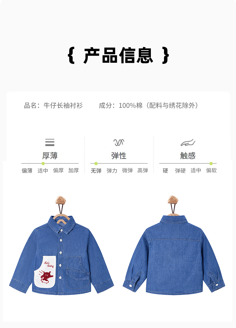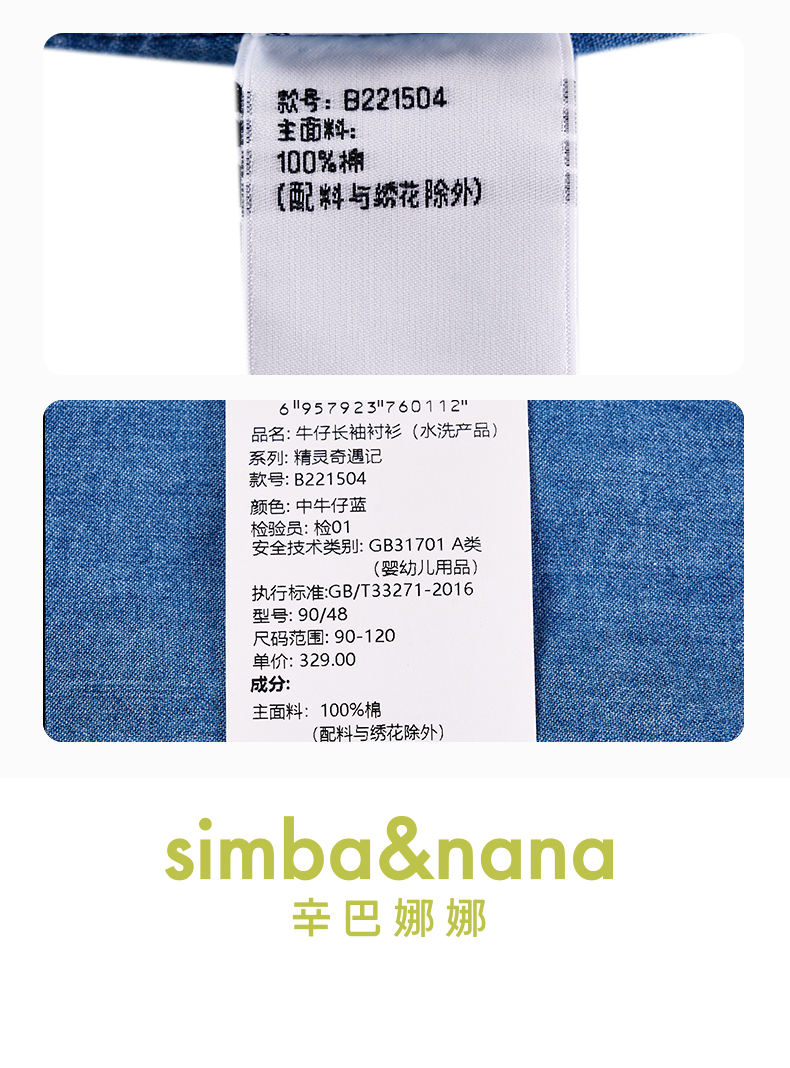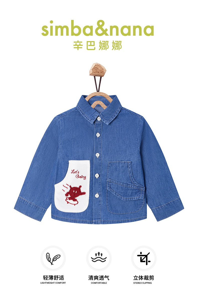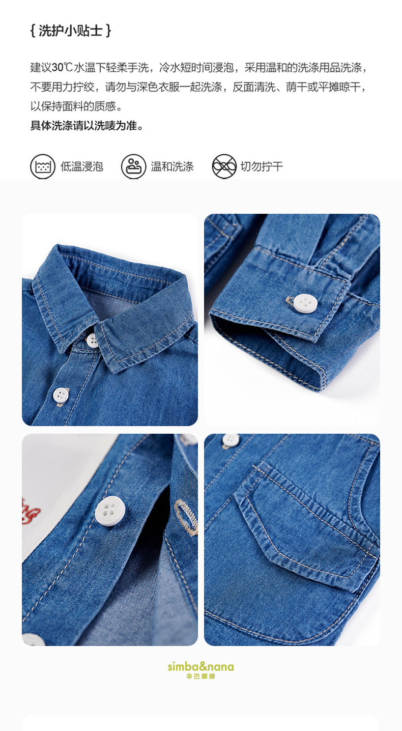【辛巴娜娜】simbanana儿童牛仔衬衣春秋款男童宝宝上衣新款童装休闲潮