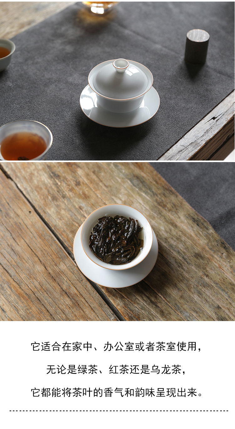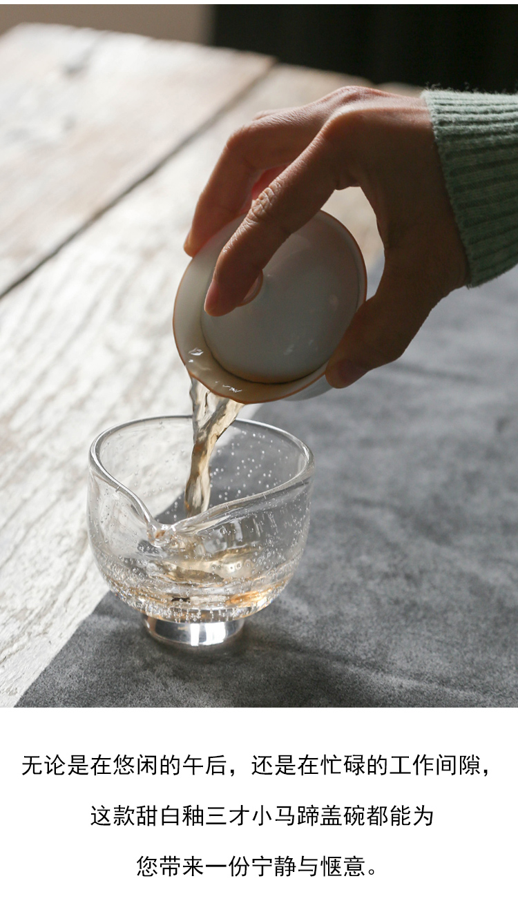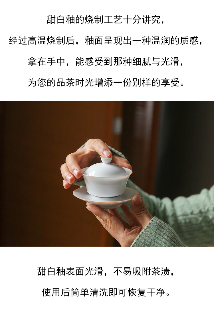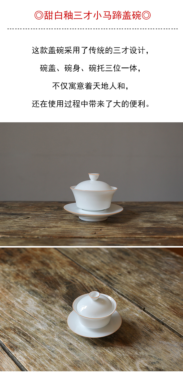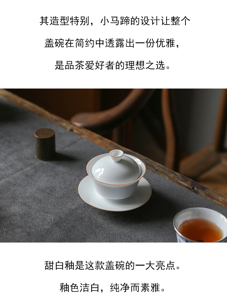 茶香记 甜白釉三才小马蹄盖碗70ml德化陶瓷泡茶碗趁手功夫茶具