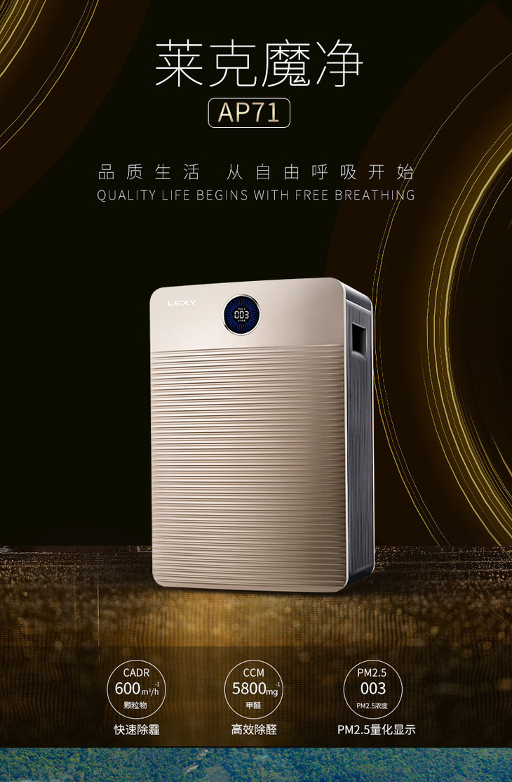 莱克(LEXY)家用空气净化器AP71卧室快速除雾霾甲醛