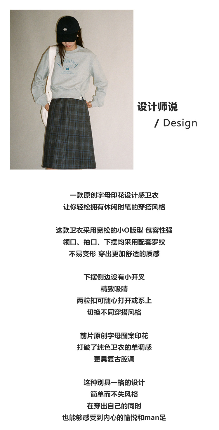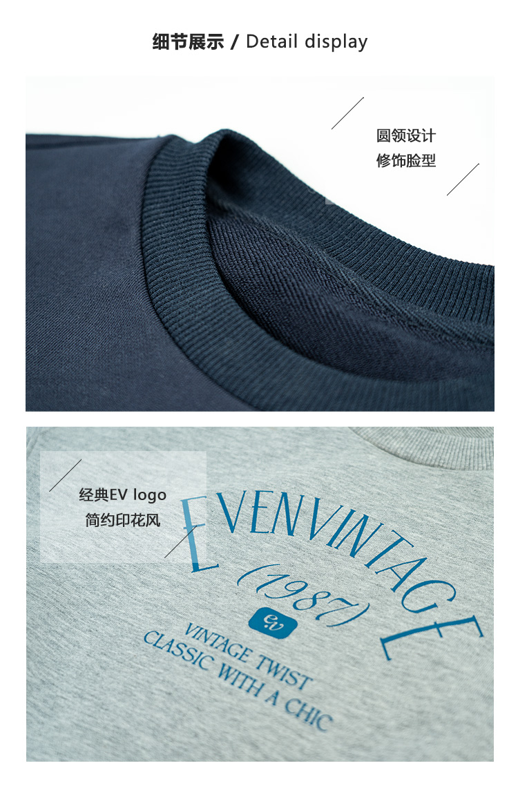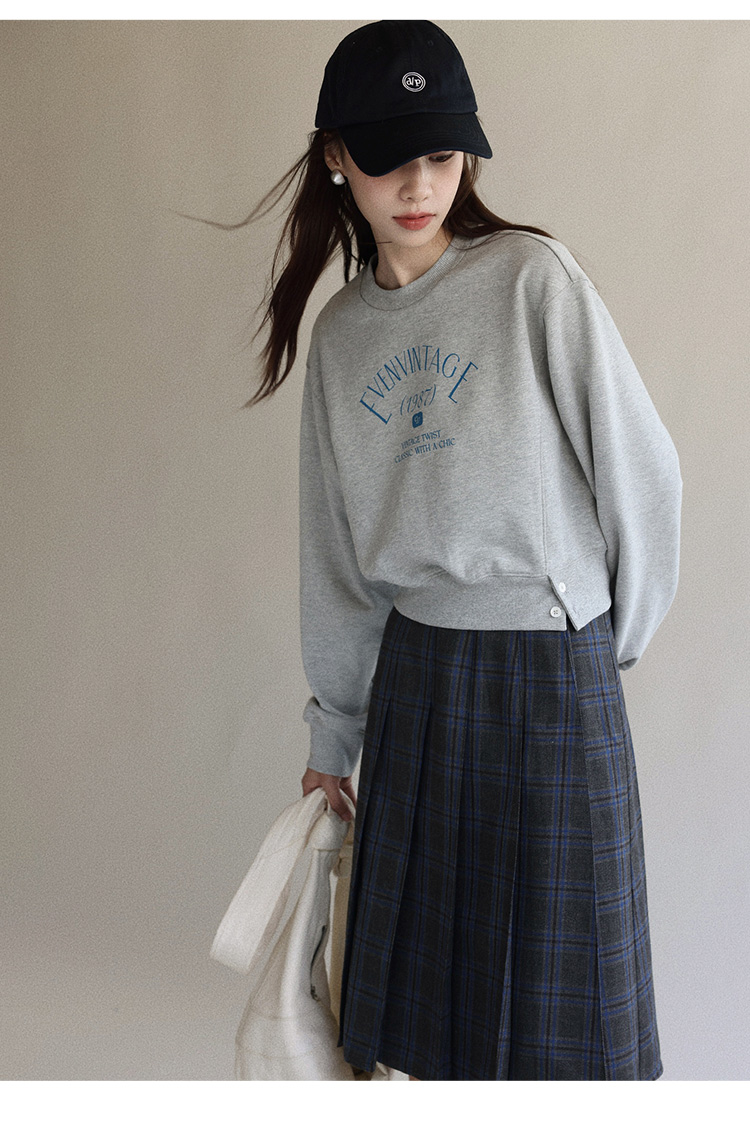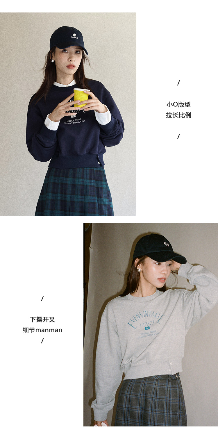Even Vintage | 经典校园 原创印花设计感短款圆领套头卫衣女早秋