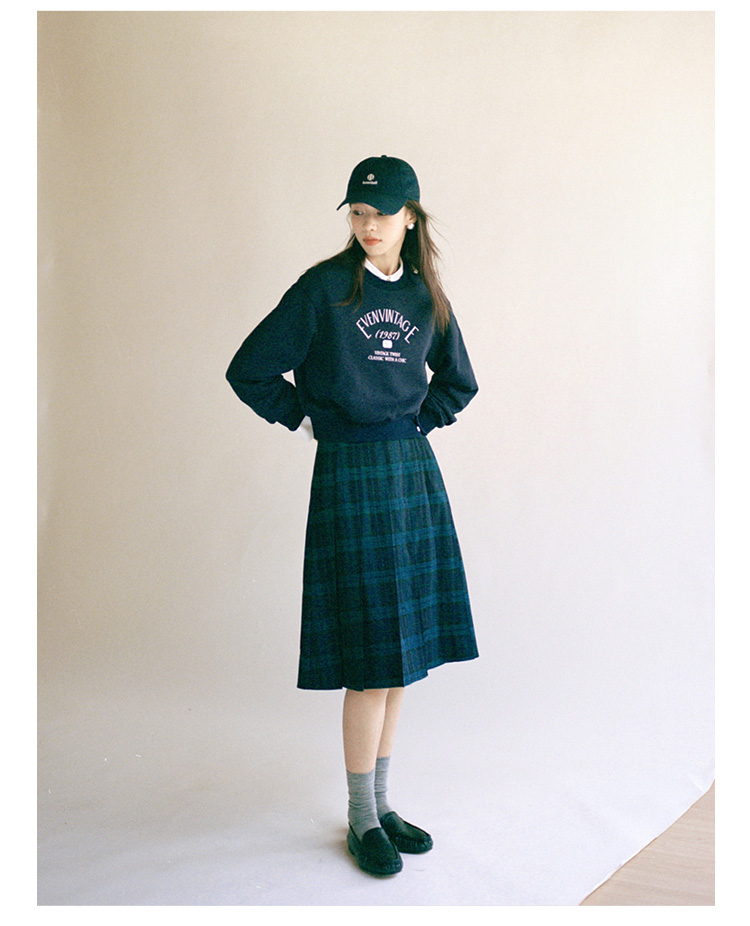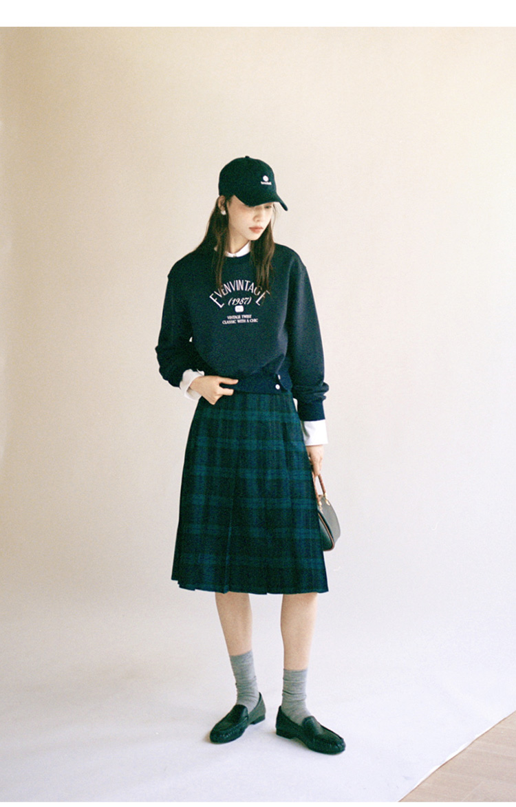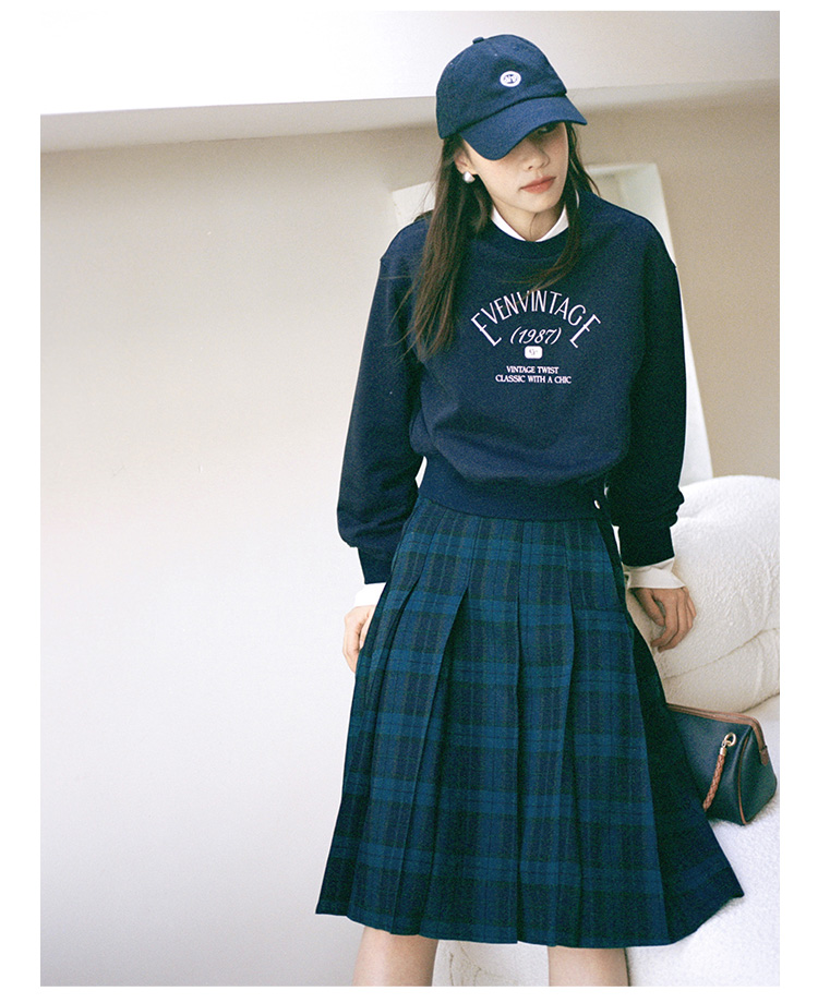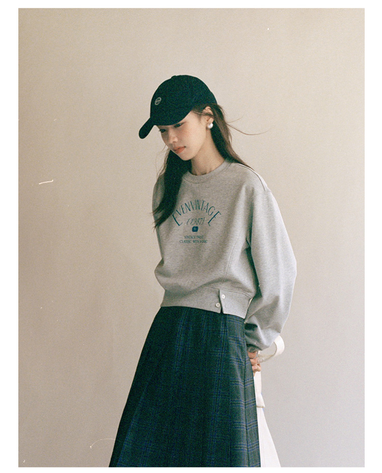 Even Vintage | 经典校园 原创印花设计感短款圆领套头卫衣女早秋