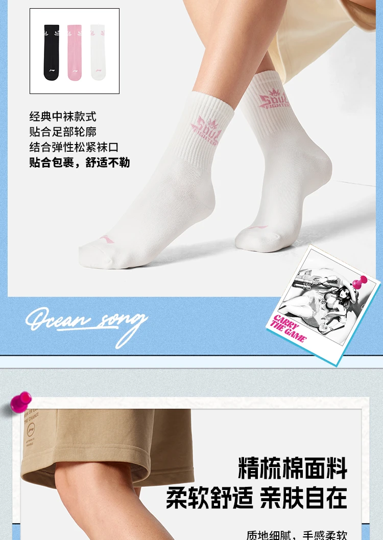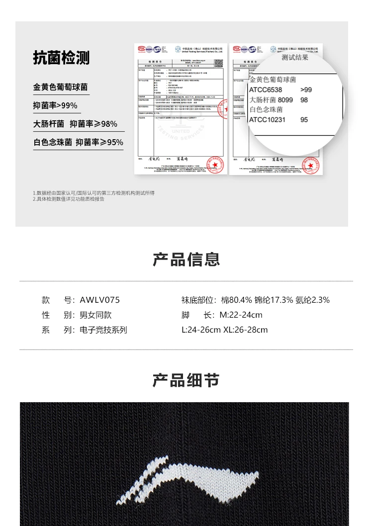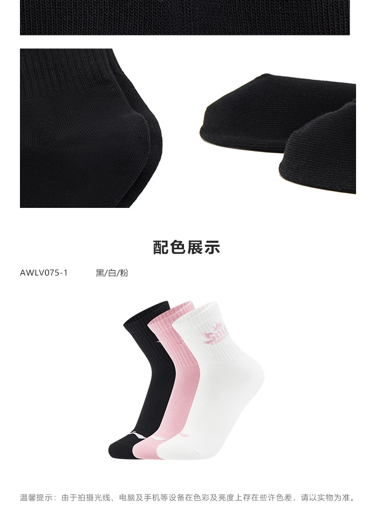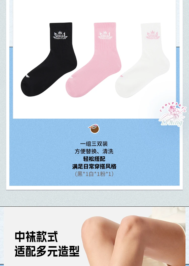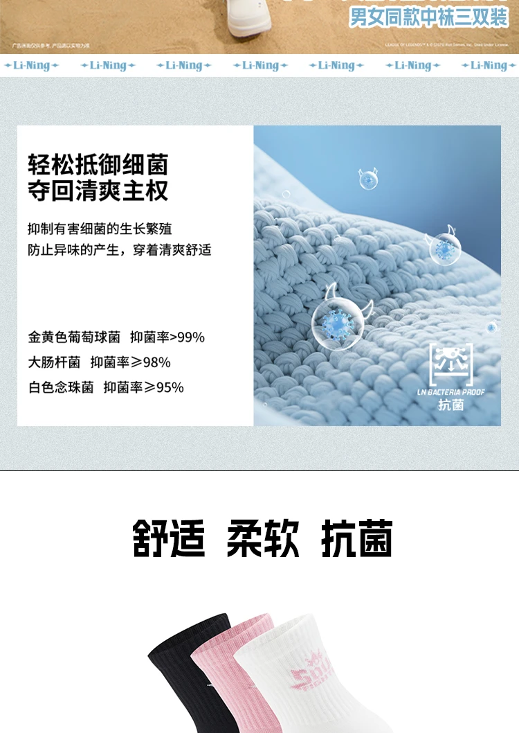 李宁 x LPL联名系列抗菌中袜三双装AWLV075