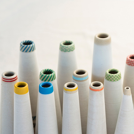 纸管的质朴和友好的质地和丝线和金线的凝重气氛相得益彰。