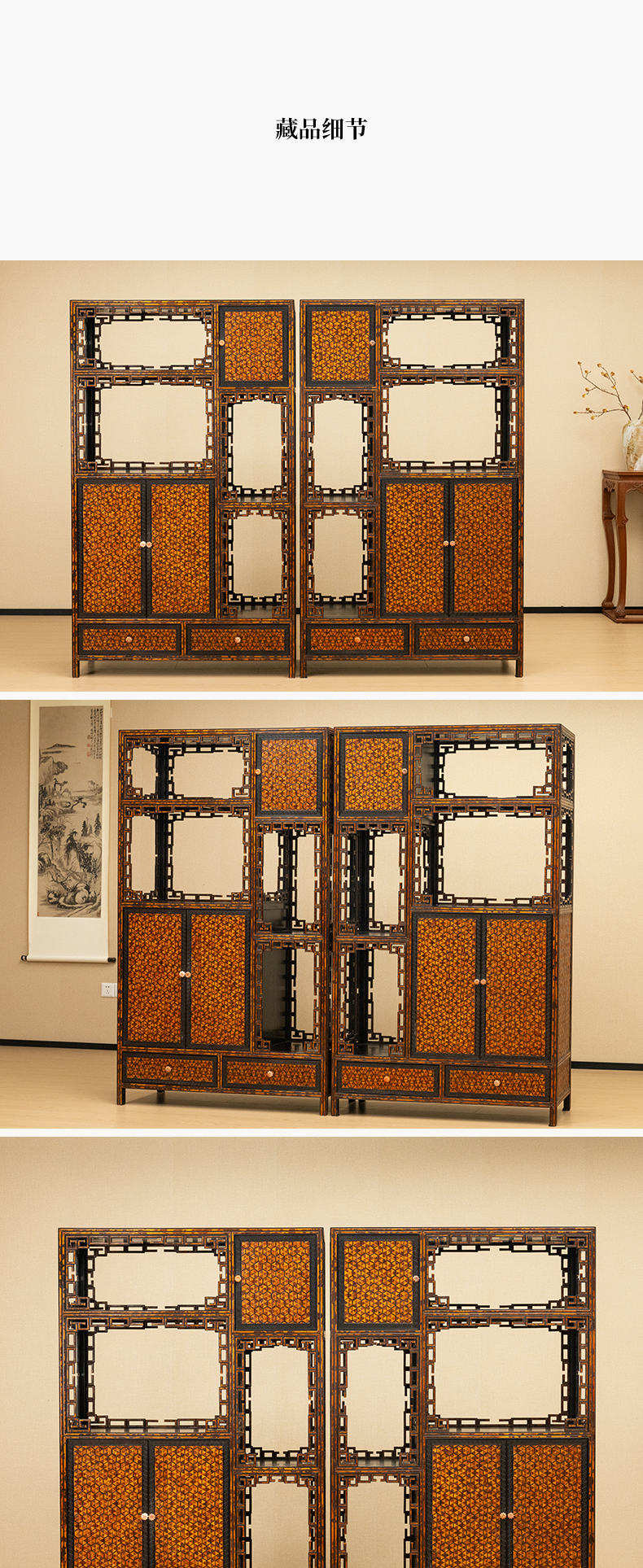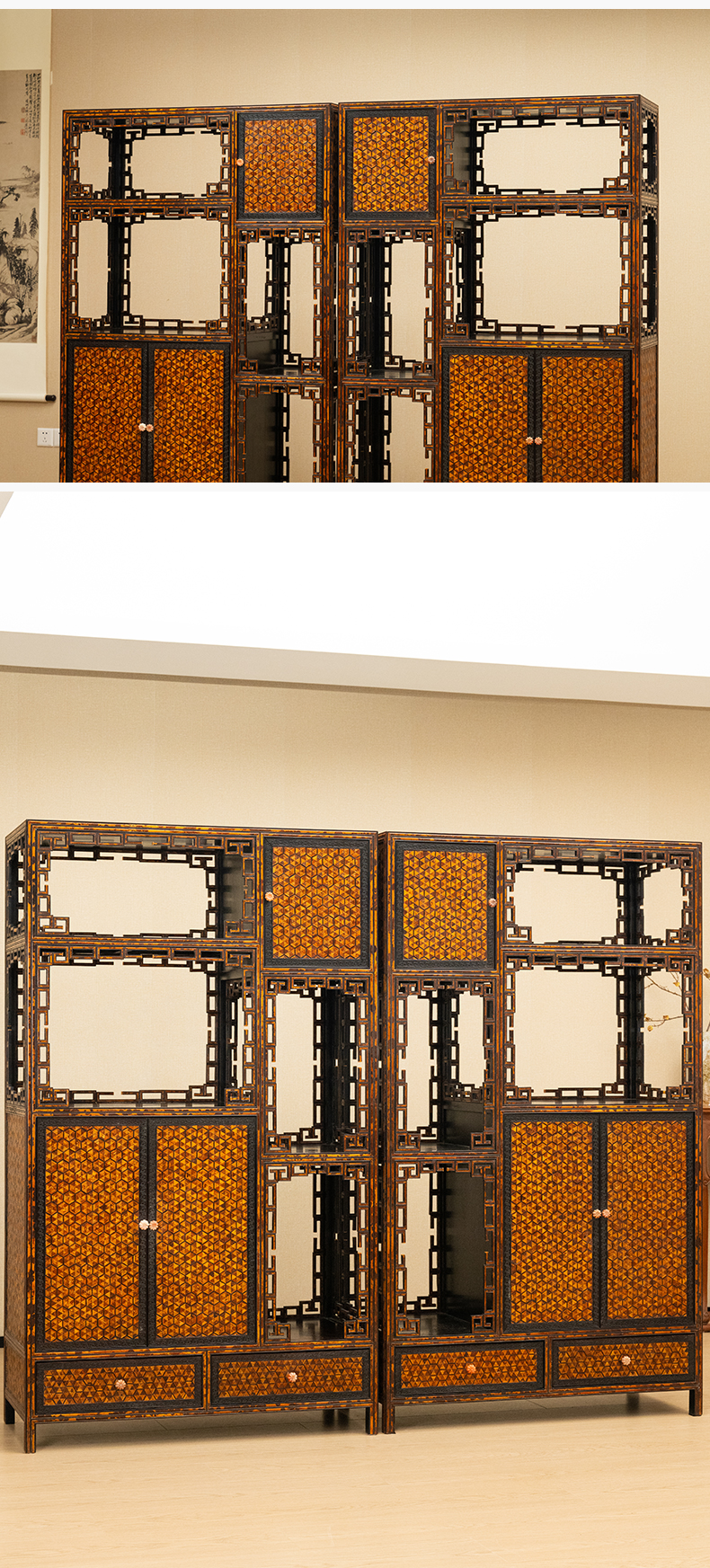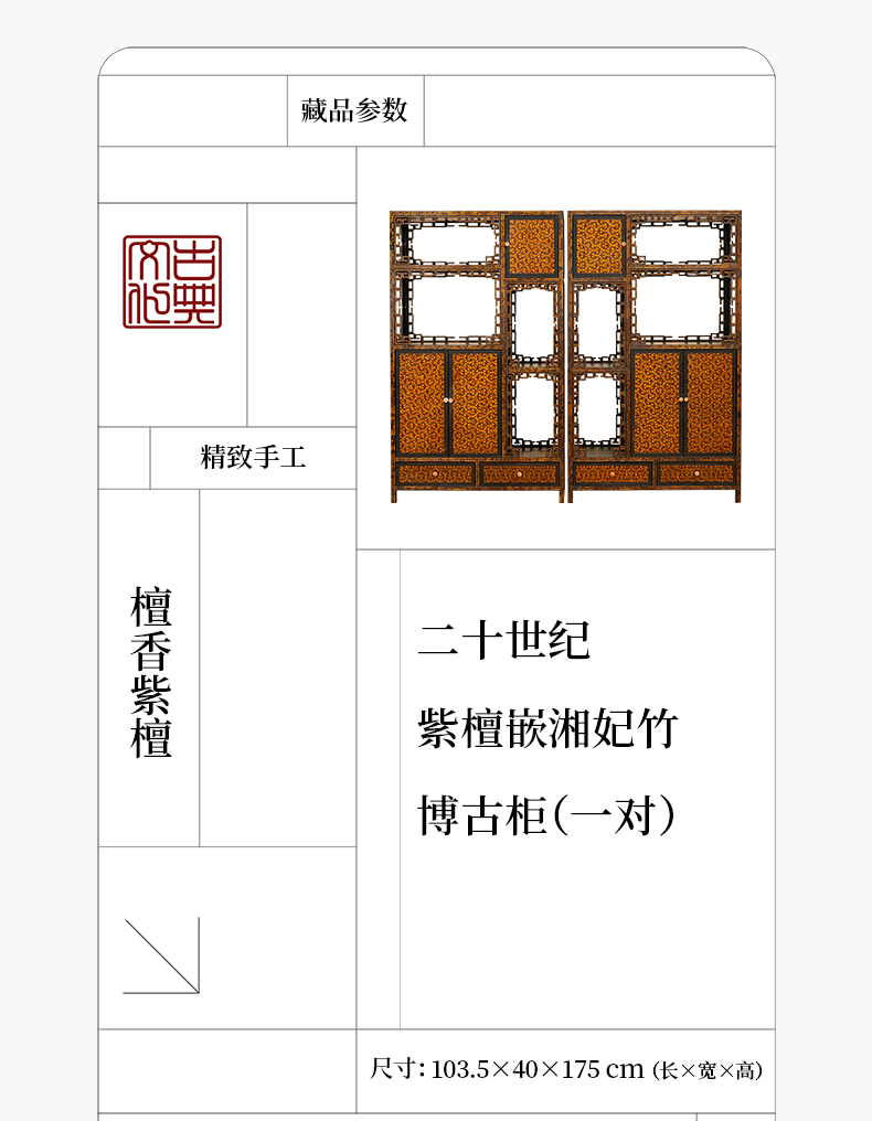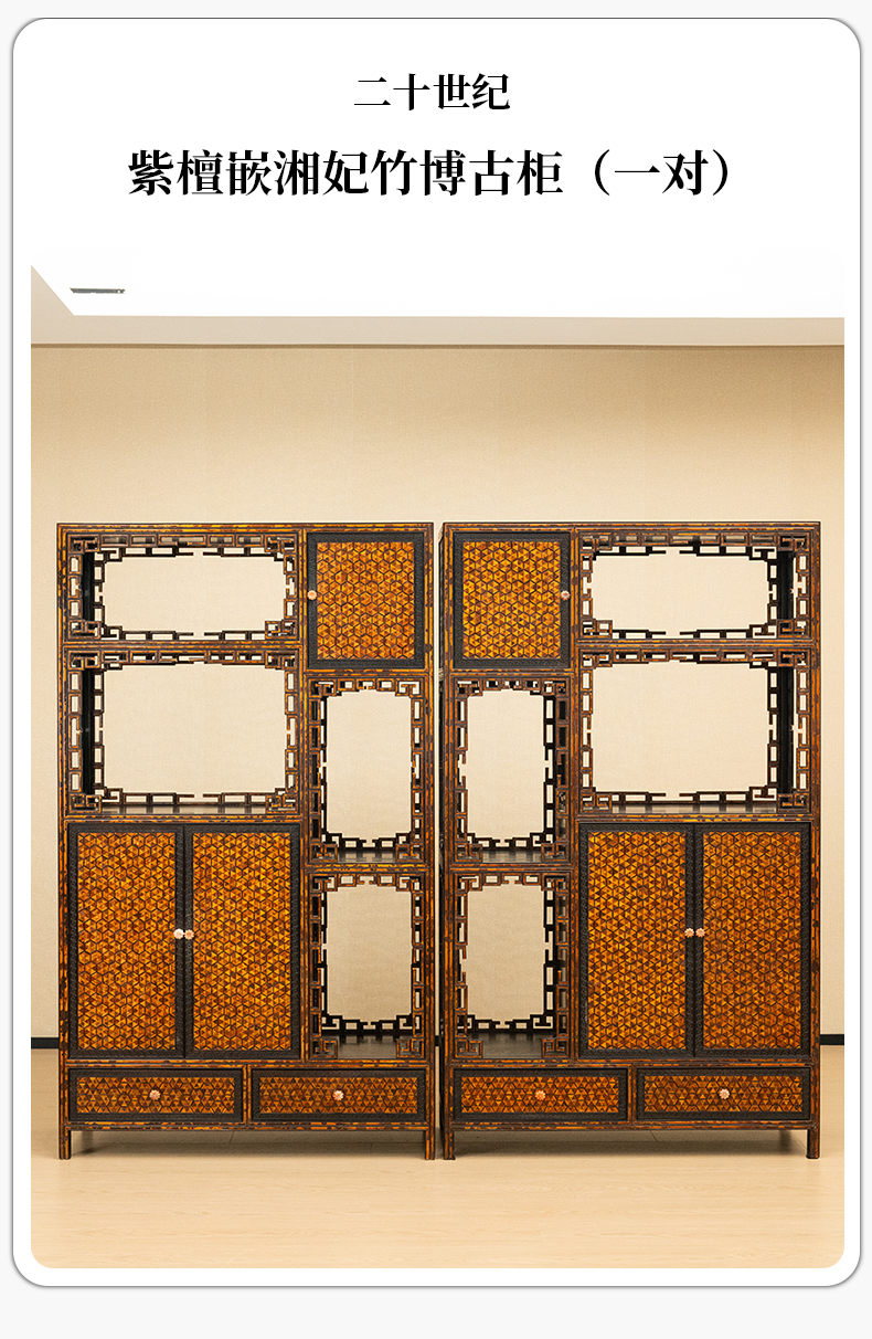 二十世纪 紫檀嵌湘妃竹博古柜(一对)