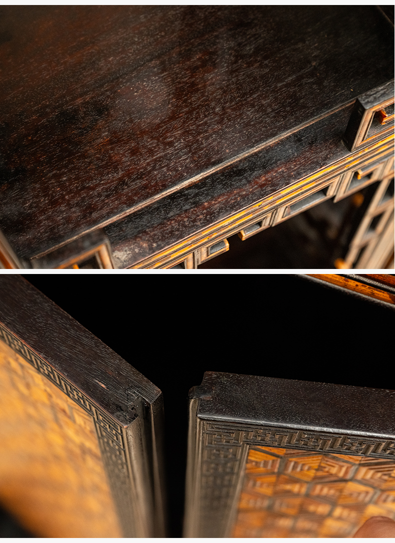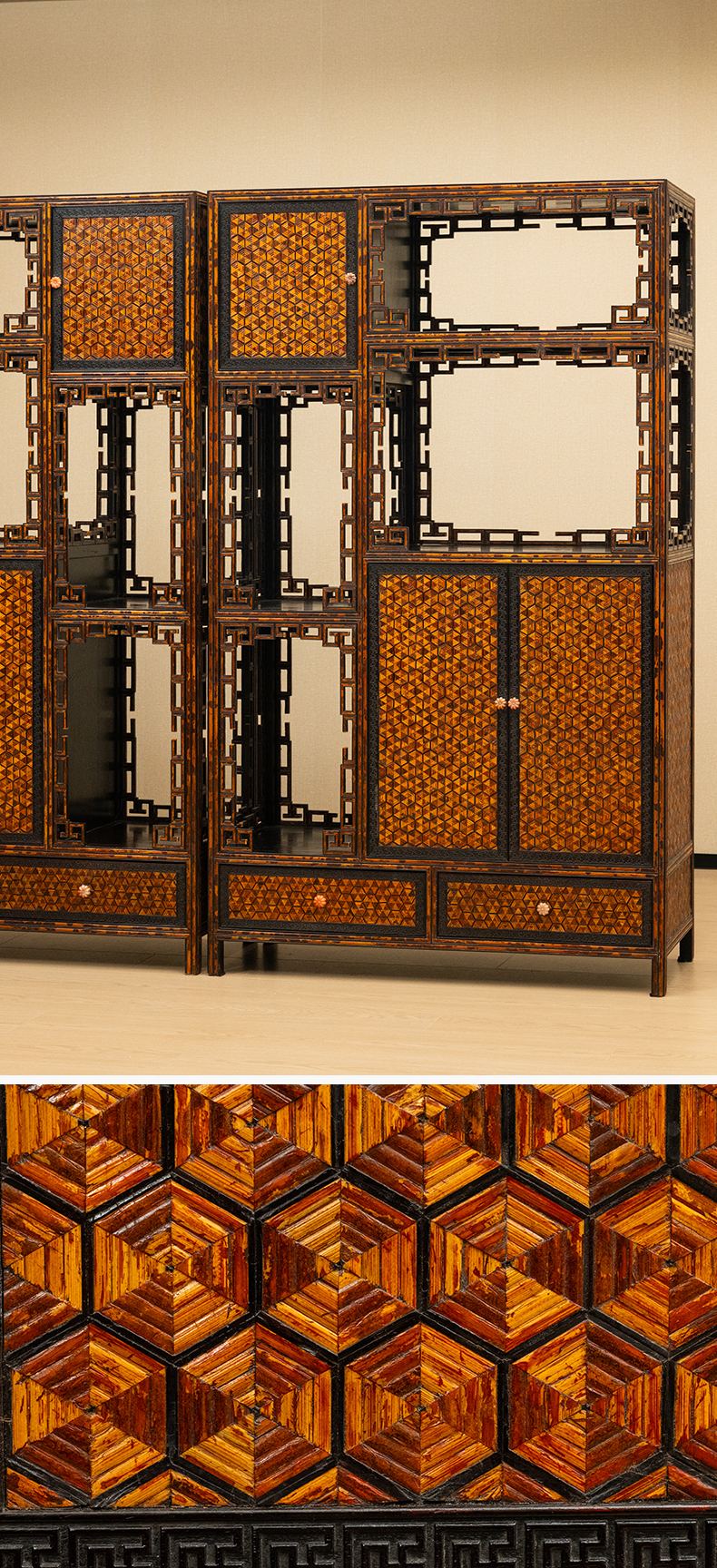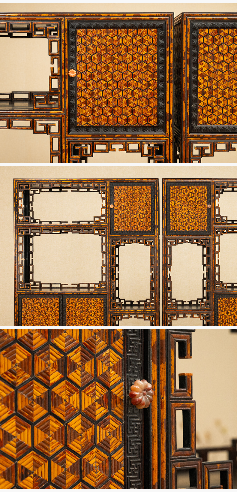 二十世纪 紫檀嵌湘妃竹博古柜(一对)
