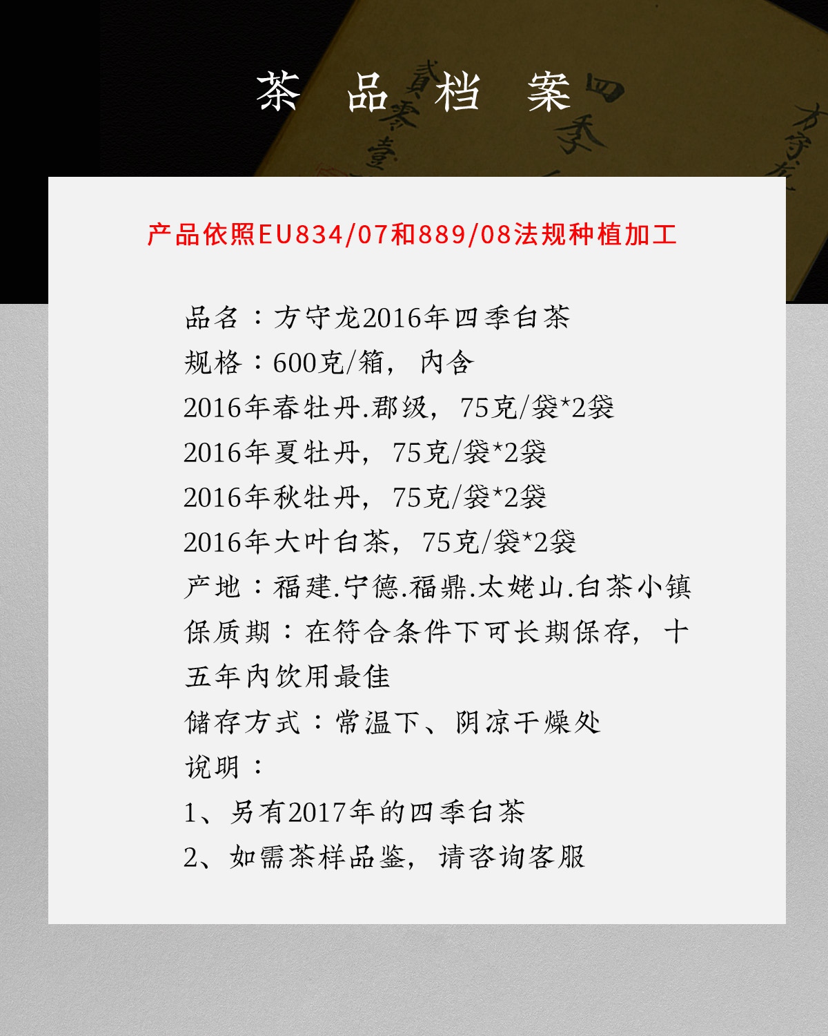 方守龙老白茶 2016年福鼎四季白茶春秋牡丹大叶冬茶【官方直供】