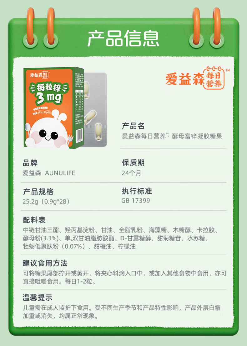 爱益森儿童酵母锌香橙味28粒/盒【拍1发2】
