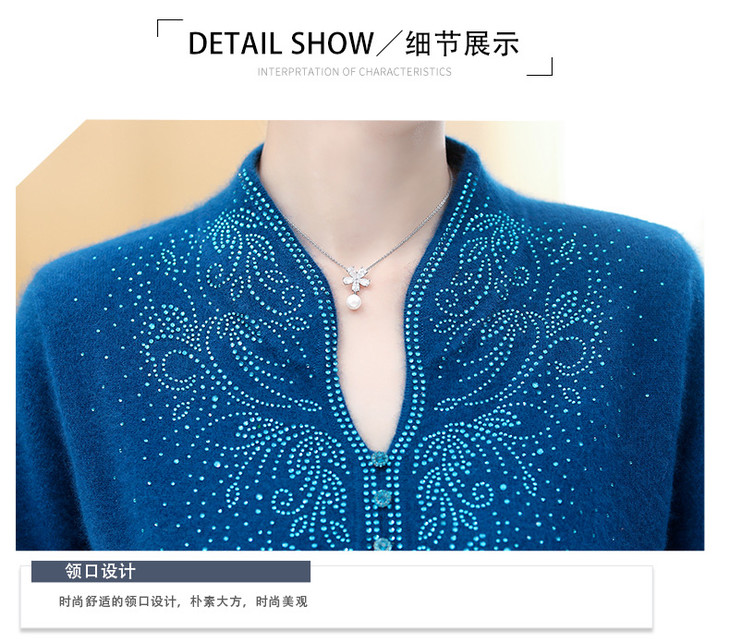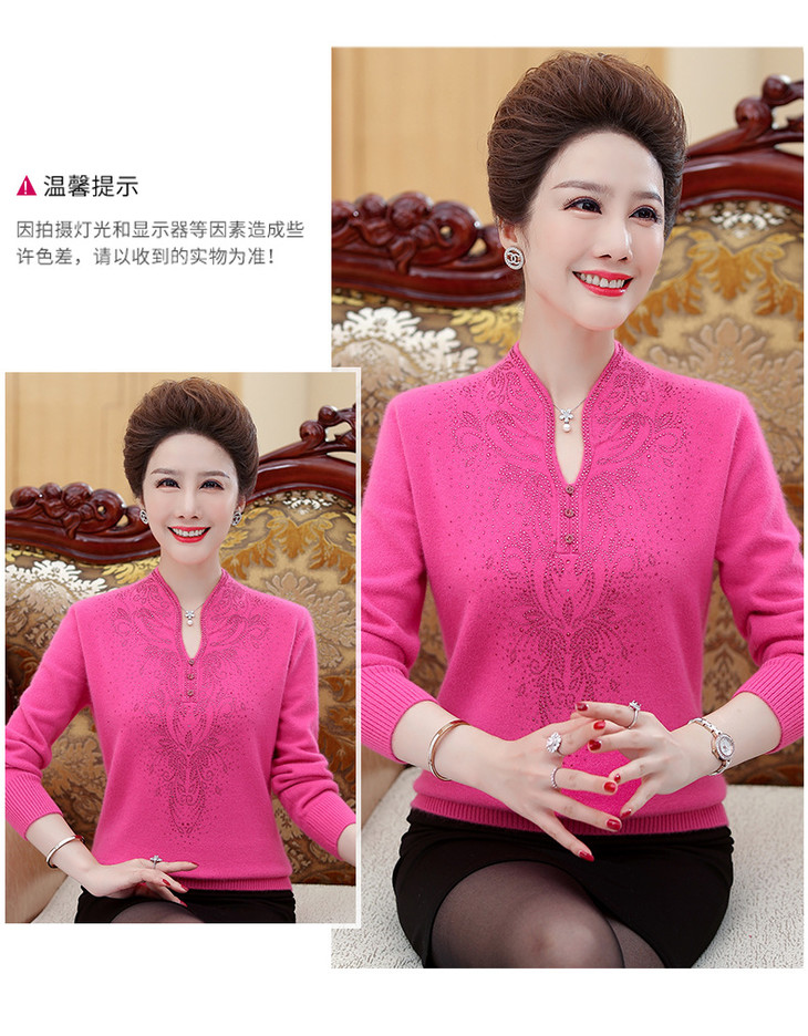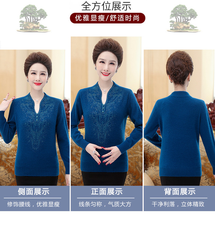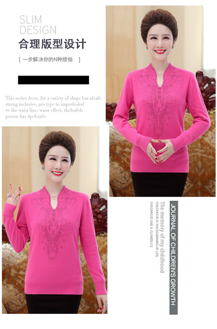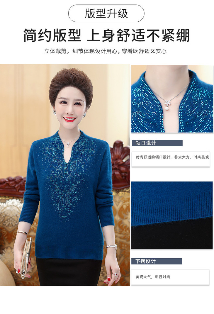 QY-JING292秋冬新款时尚V领烫钻妈妈装貂绒打底衫